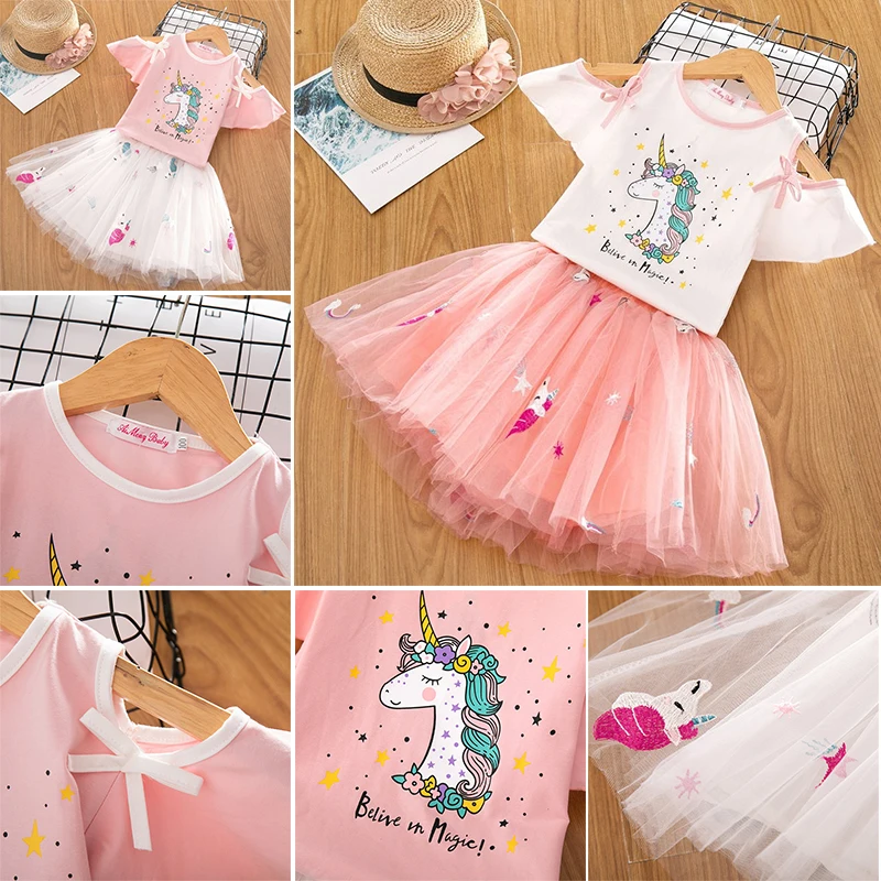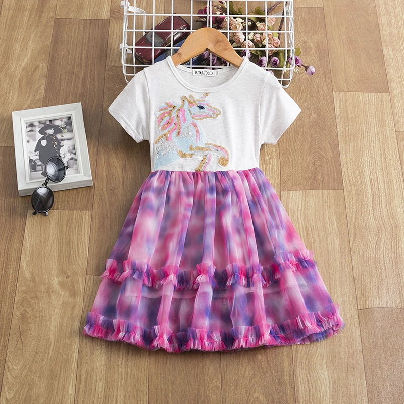 Платье для девочек, с единорогом, кружевное, летнее, без рукавов, 2020
