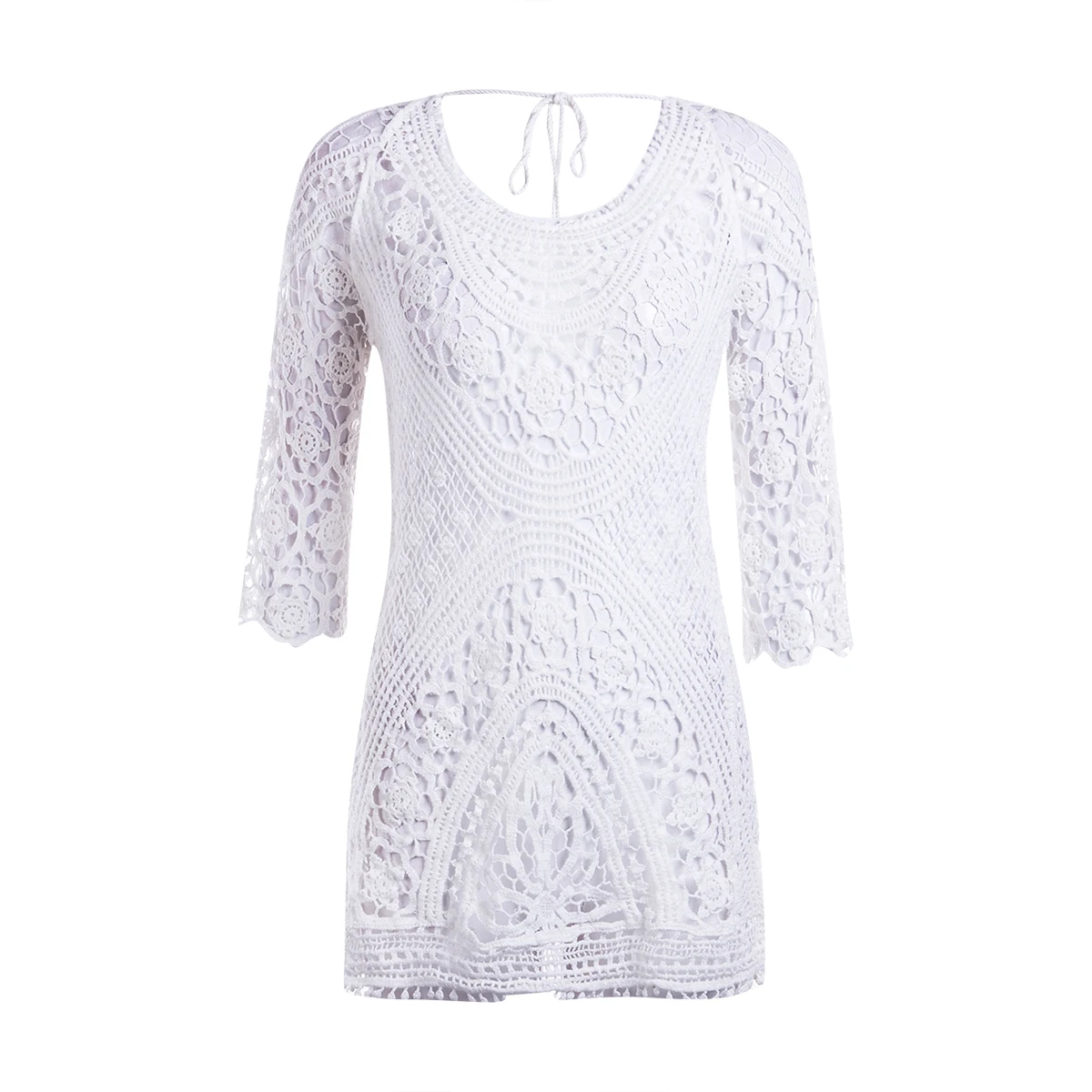 Женская Кружевная туника, Пляжная туника с открытой спиной, вязаное...