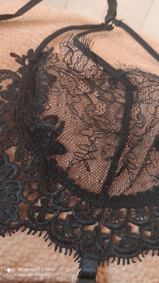 Виглядає як на фото, але не дуже приємно до тіла , така жорстка тканина , широкий в обхваті під груддю, на крючеках , можна думаю вшити, кружева гарної якості але не сітка . Прийшло доволі швидко , пізніше додам фото .