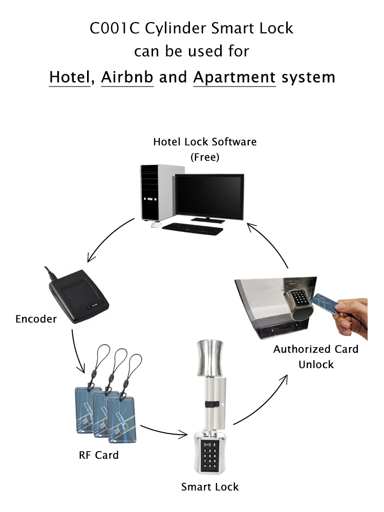 Цилиндр прост, о RFID открыть, с кодом номера, чтобы открыть или через приложение (для экстренной ситуации дает ему ключ). Коды могут быть постоянно и с ограничением по времени. Rfid-ключ может быть удален индивидуально через приложение. С дополнительным продуктом «шлюз G2» могу ли я управлять цилиндром удаленно. Шлюз подключен через Wi-Fi и должен быть в диапазоне Bluetooth для цилиндра. Отличный продукт.