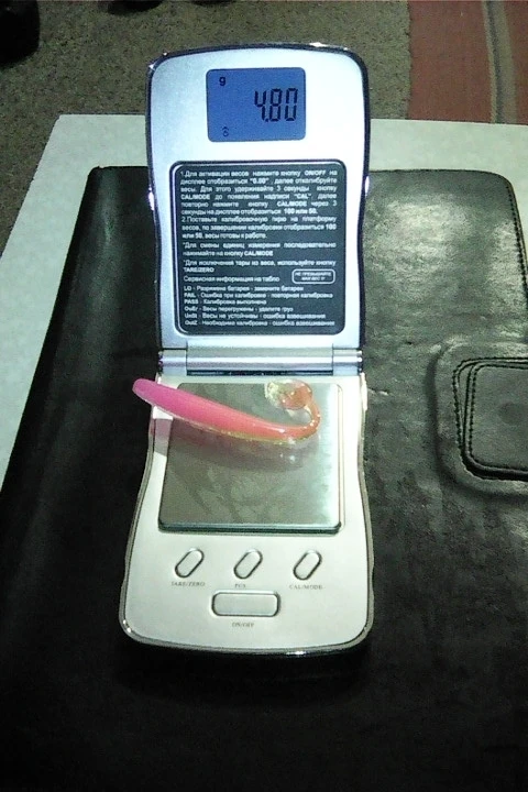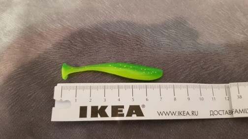 Товар получил. Всё как в описании. Резина мягкая, играть в воде будет очень хорошо. Длинна соответствует заявленной 9,5 см. А вот вес немного гуляет от 4,6г. до 4,8г. Имеет не сильный запах селикона, ну это быстро выветрица. В целом не плохая резина. Мне понравилась , посмотрим что скажет рыба на ближайшей рыбалке. Спосибо продовцу!!!