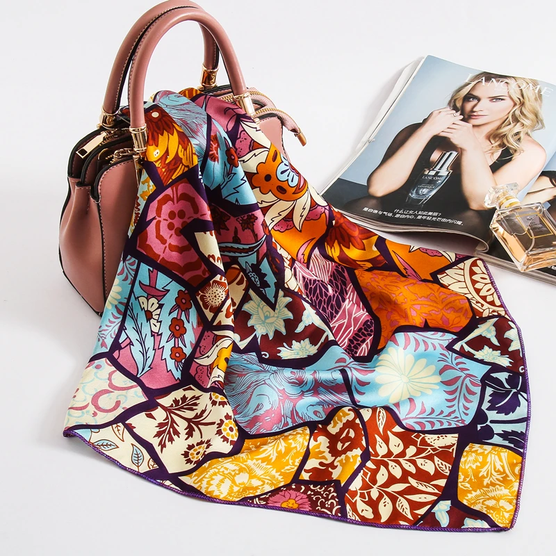 2021 дизайнерский Шелковый квадратный шарф для женщин маленькие шейные шарфы модный принт фуляр повязка для волос атласный шейный платок