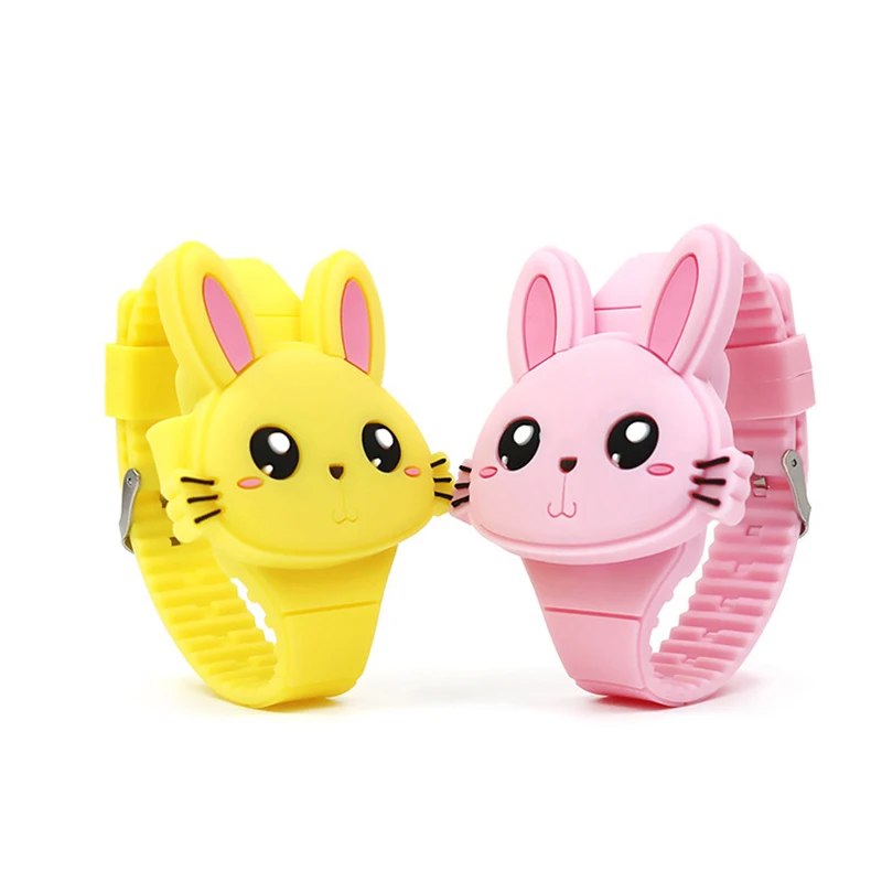 Детские часы с милым Кроликом, с откидной крышкой, резиновый светодиодный, детские часы для девочек, мальчиков, студентов, девочек, часы, Reloj Infantil Saati