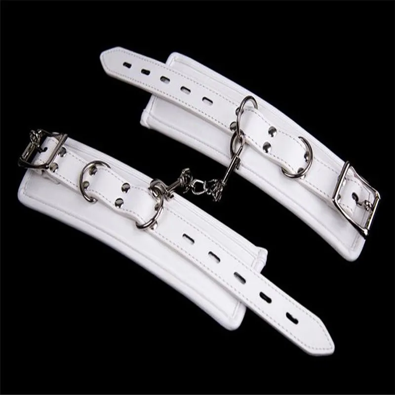 Наручники из нержавеющей стали, кожаные белые манжеты, манжеты на л...