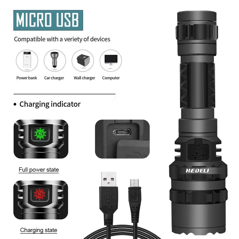 Тактический фонарь 6000 Люмен самый мощный светодиодный фонарик usb тактический фонарь перезаряжаемый охотничий cree xml l2 ручной фонарь