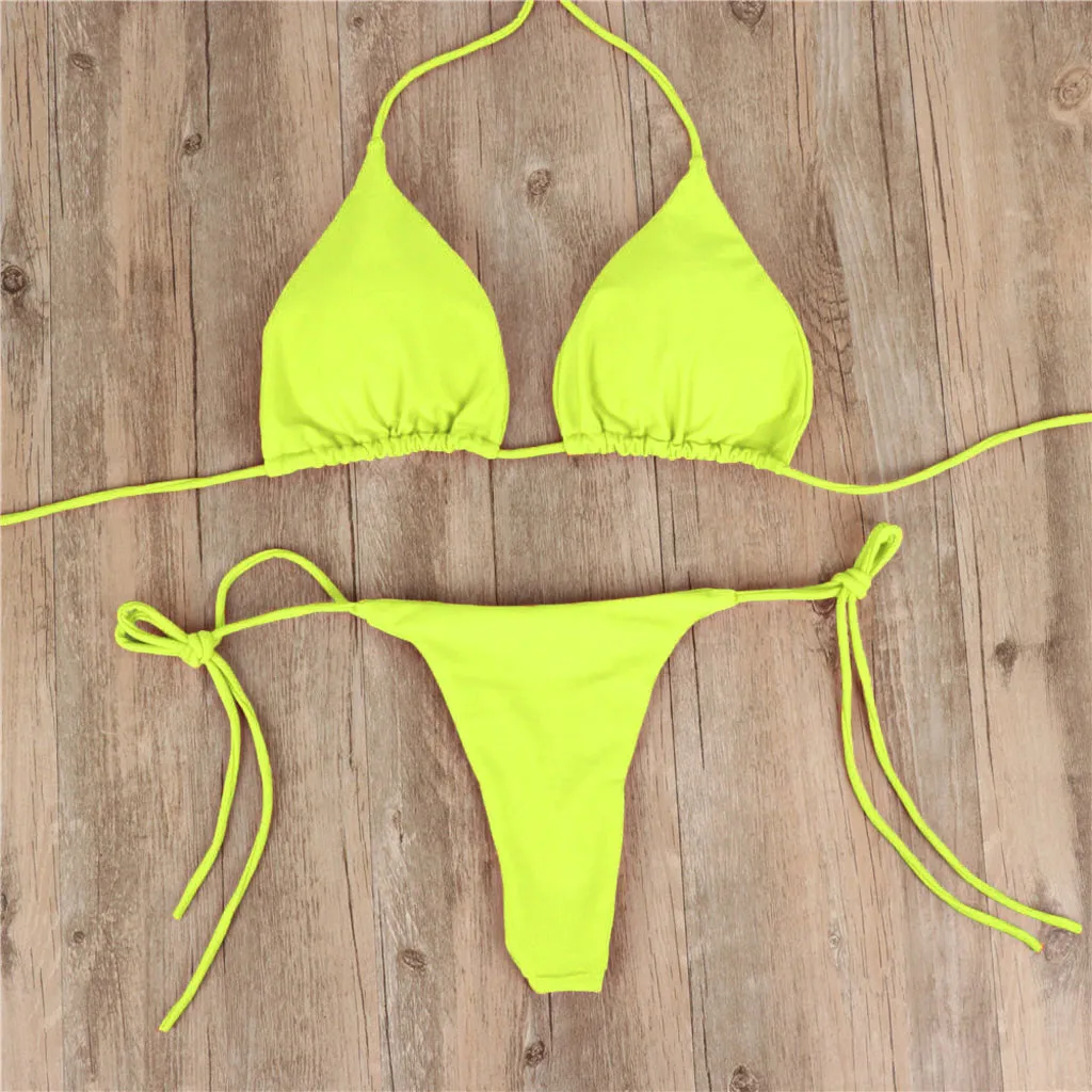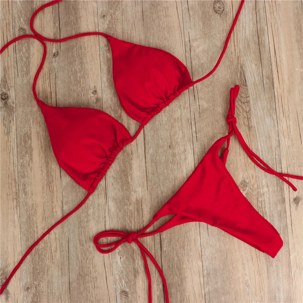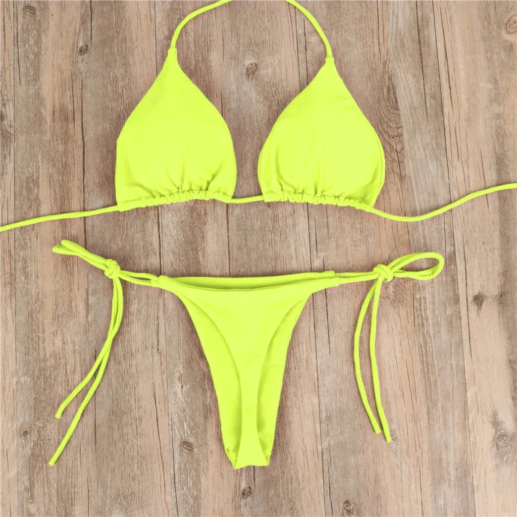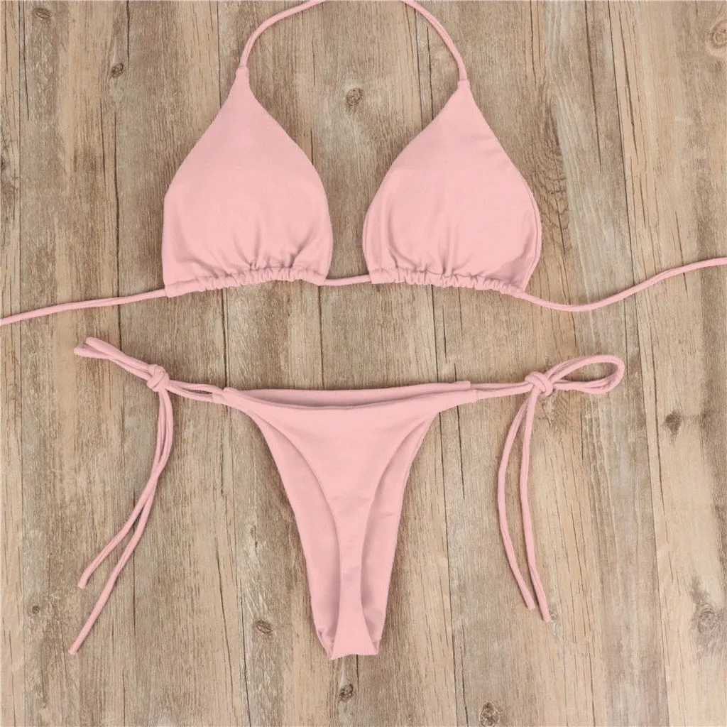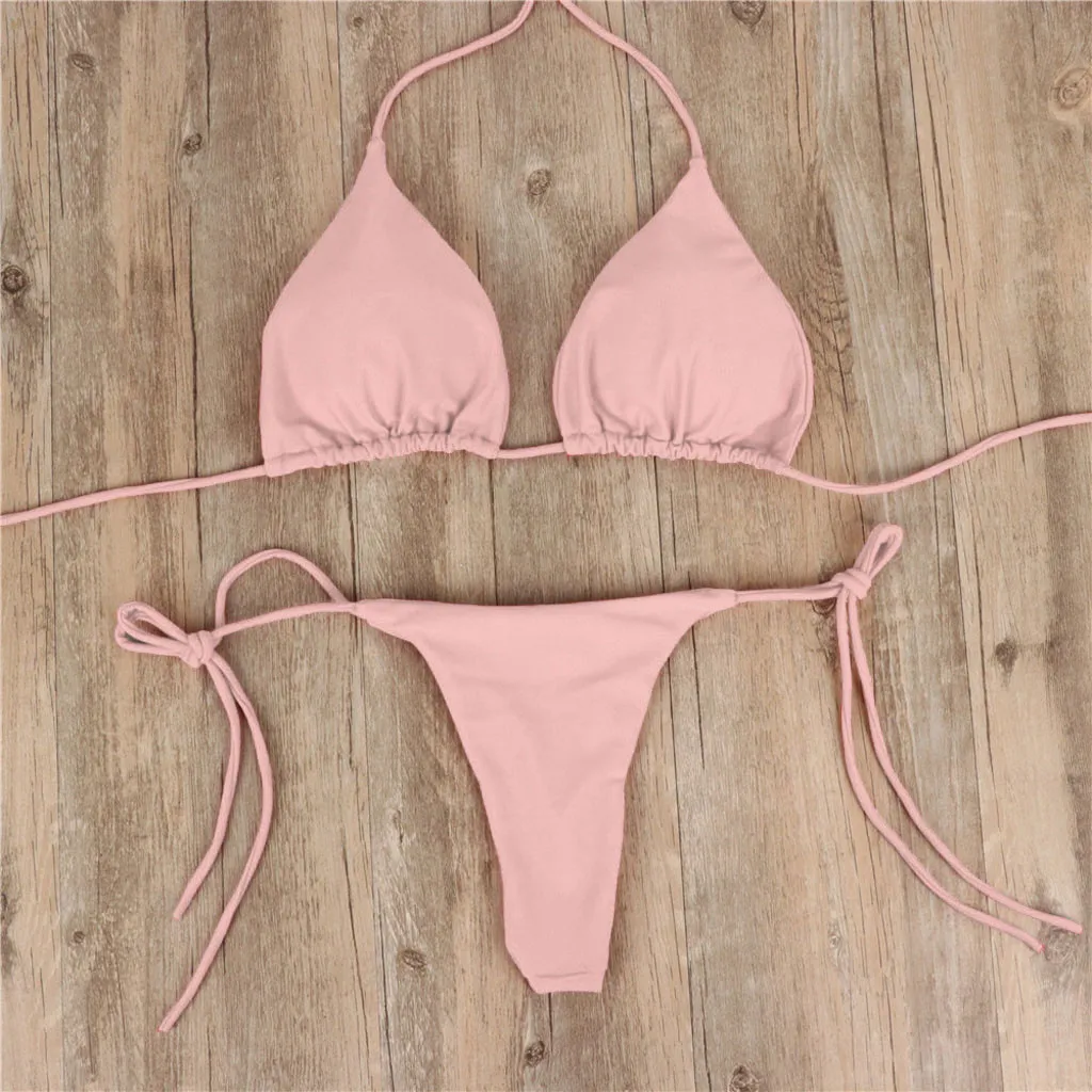 Простой треугольный топ, бикини с завязками сбоку. Доставка была быстрой в США, когда я выбирал USPS. Швы были не отличными. Сверху было слишком много двойных сзади на конце двух частей.