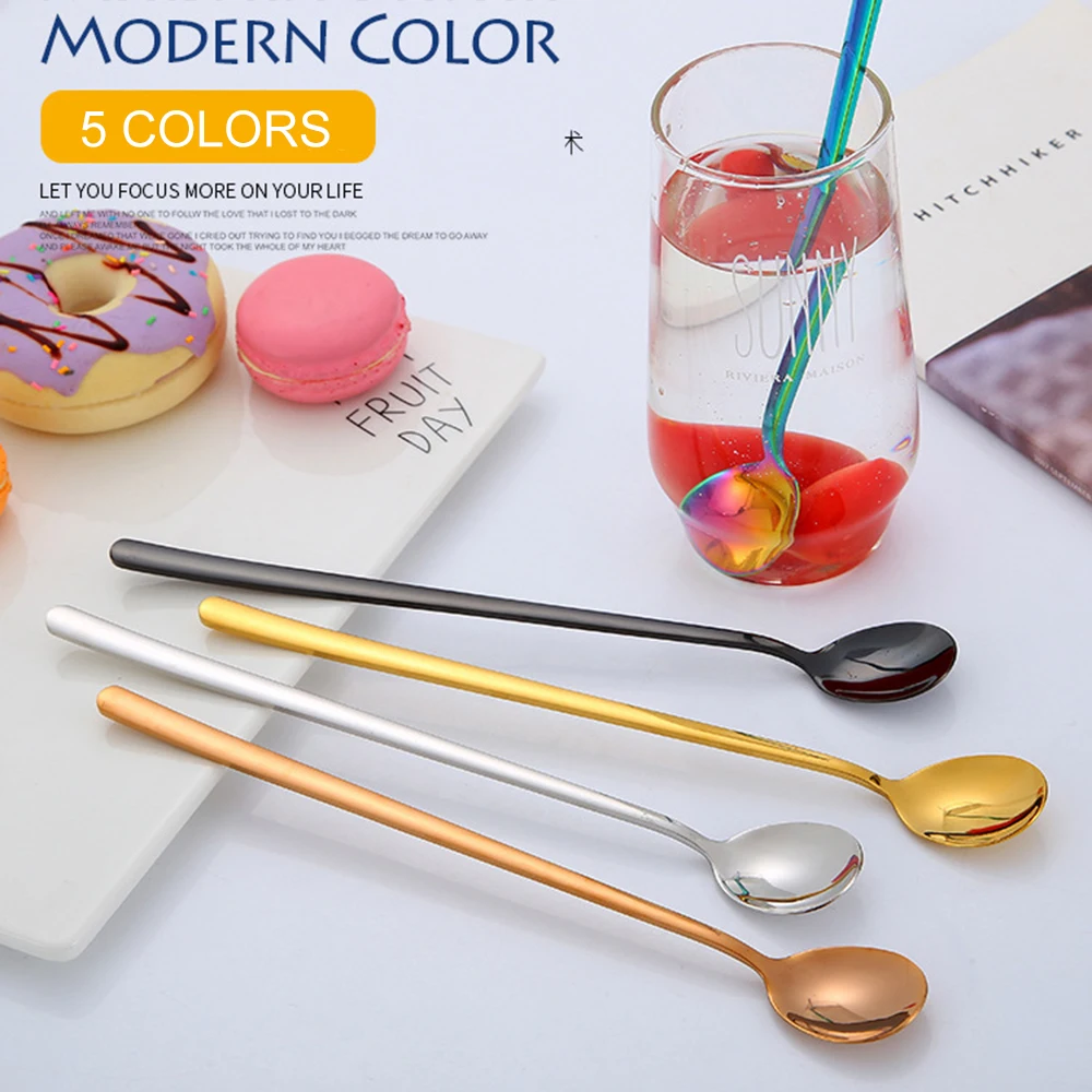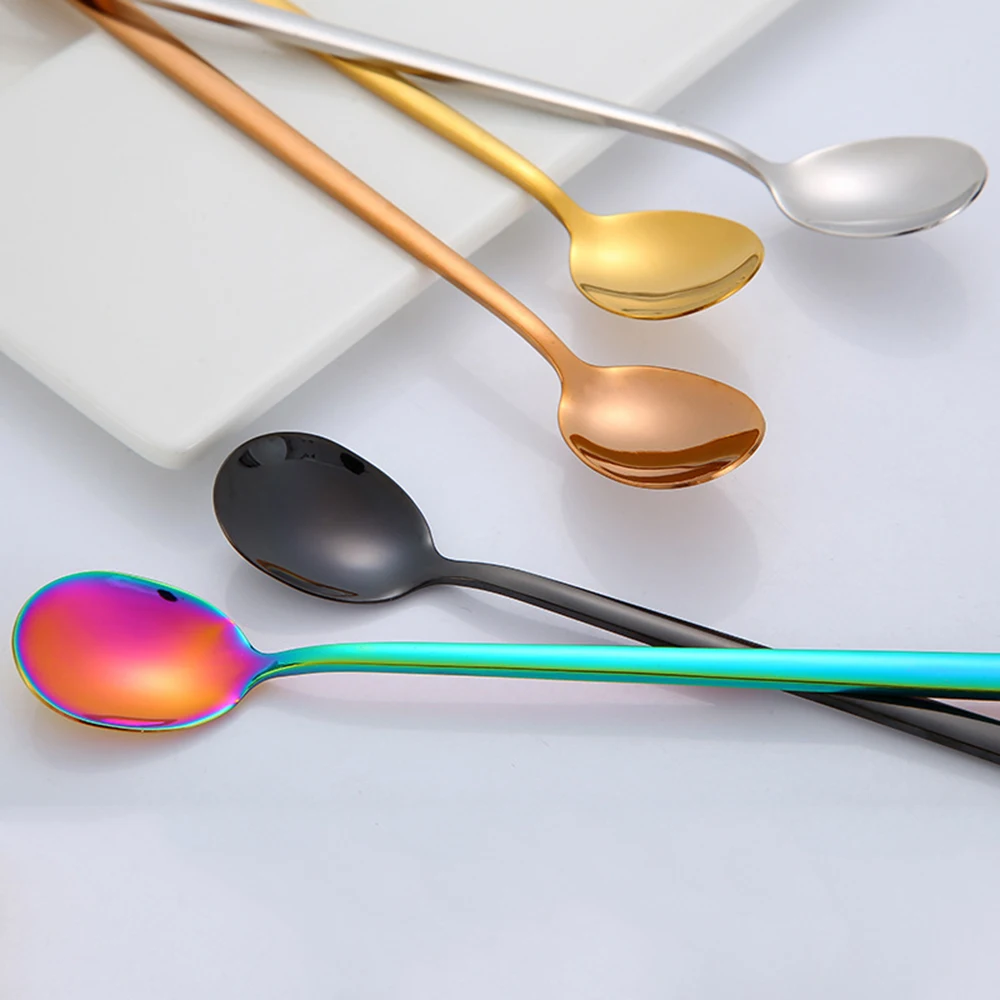 Ложка кофейная из нержавеющей стали с круглой головкой и длинной ру...
