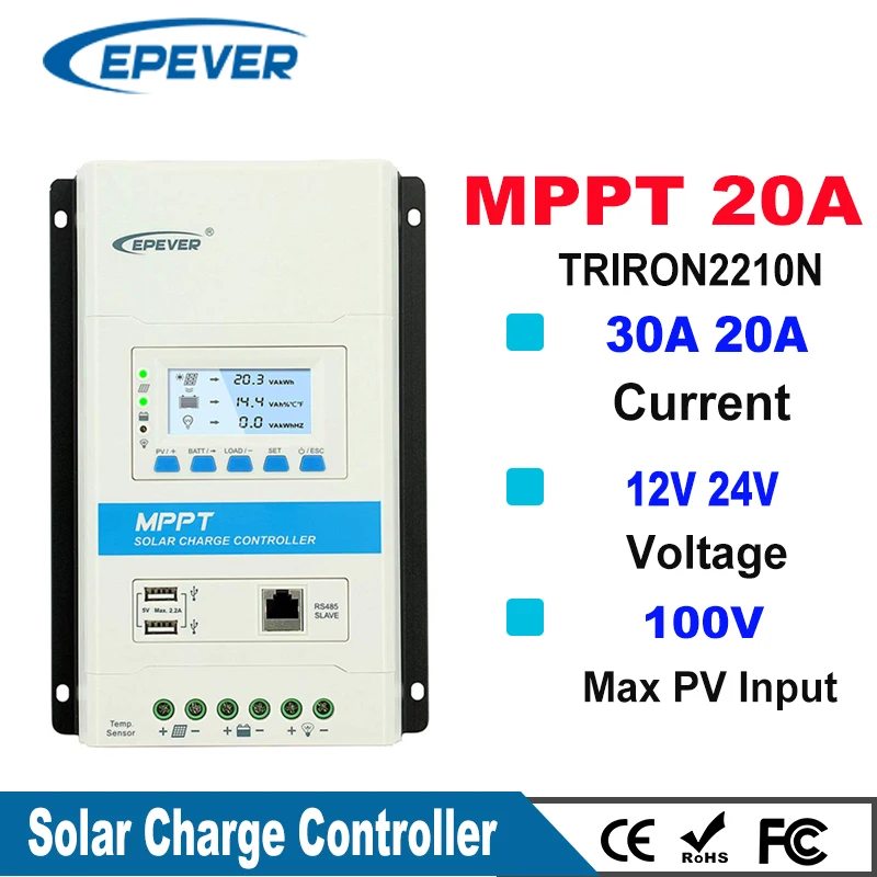 Контроллер заряда EPever MPPT 20A 12 В 24 В подсветка LCD Max 100 в контроллер солнечной панели двойной USB 5 В выход Triron2210N UCS DS2