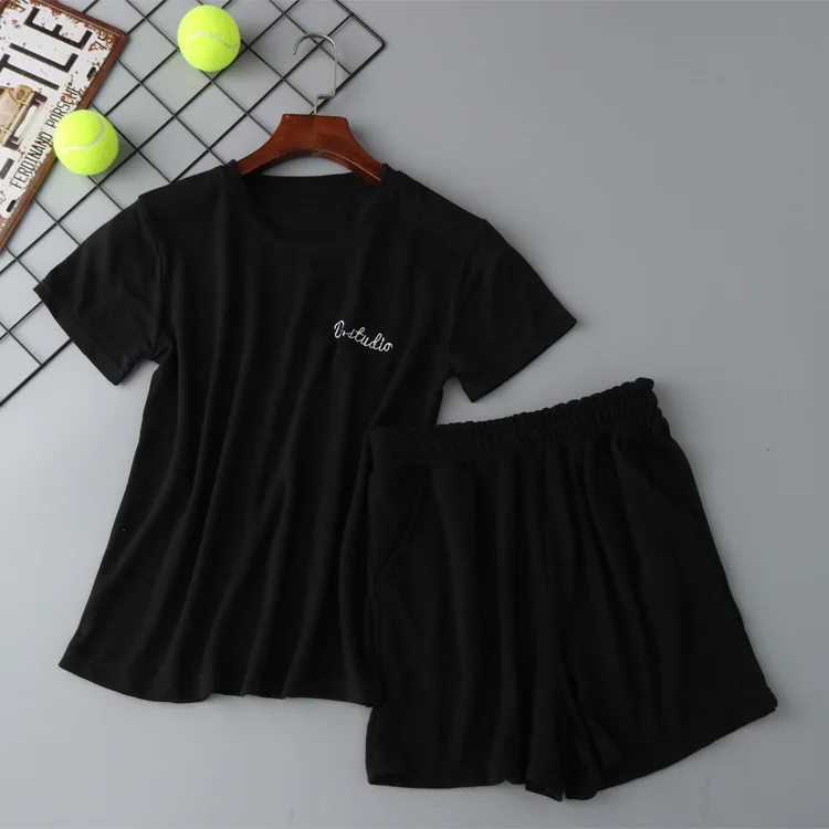 Пижама Daeyard Женская хлопковая, однотонная летняя рубашка с коротким рукавом и шорты, комплект из 2 предметов, однотонная одежда для сна, домашняя одежда