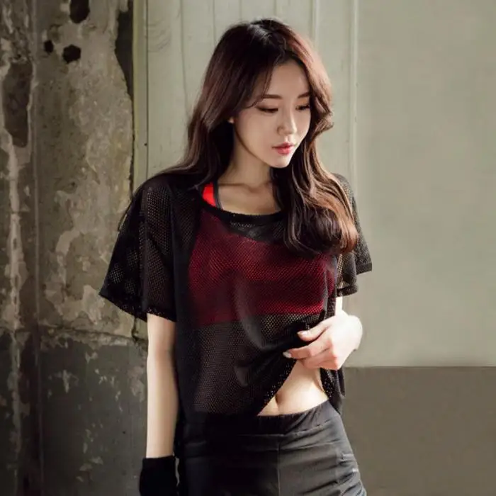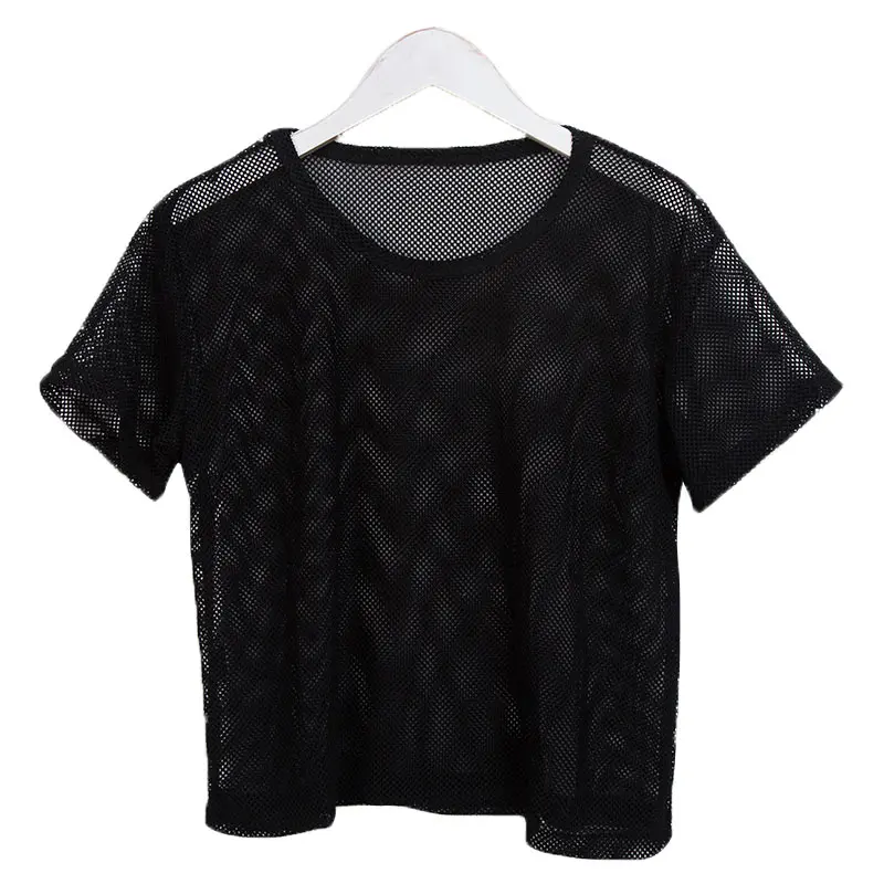 Тип одежды: весенне-летняя женская футболка с коротким рукавом из сетчатого материала для йоги, быстросохнущие спортивные топы для бега