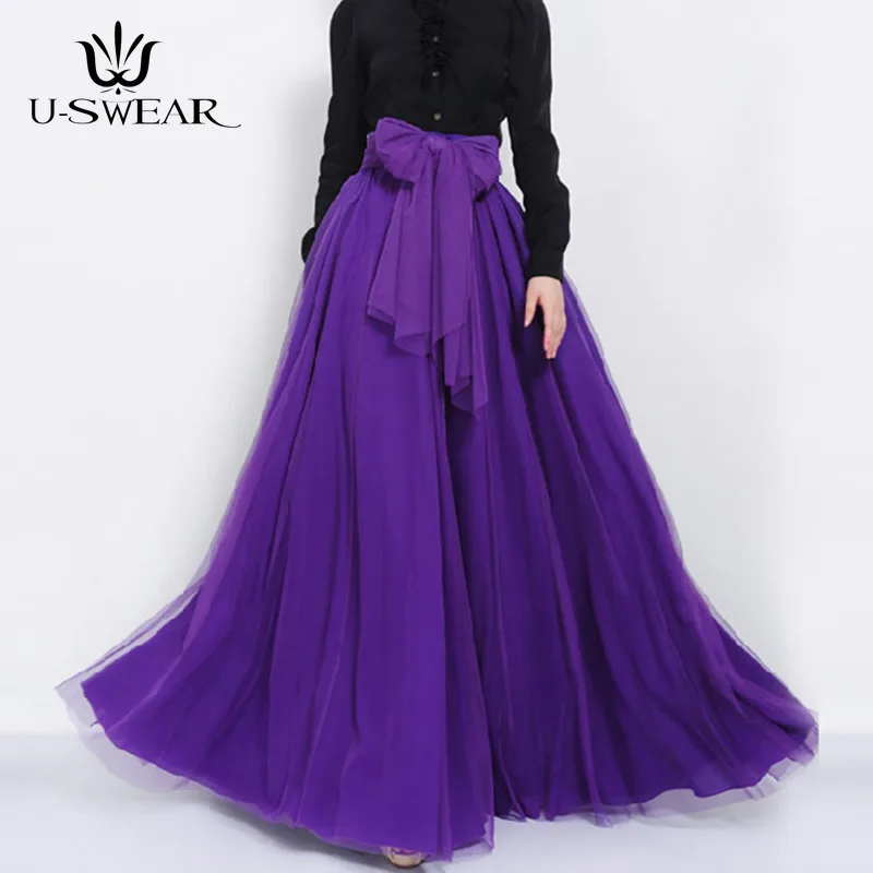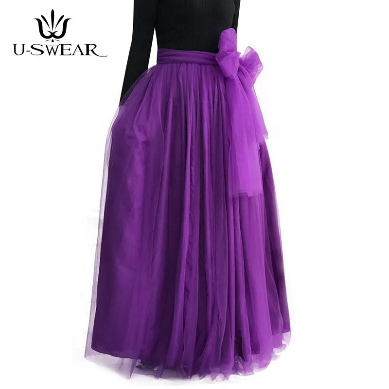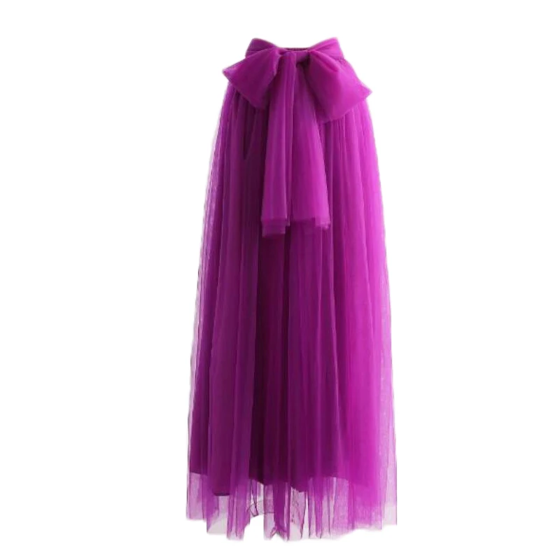 Женское бальное платье, официальная трапециевидная Пышная юбка с большим бантом, длинвечерние вечерняя юбка подружки невесты на свадьбу, Тюлевая юбка-пачка с высокой талией
