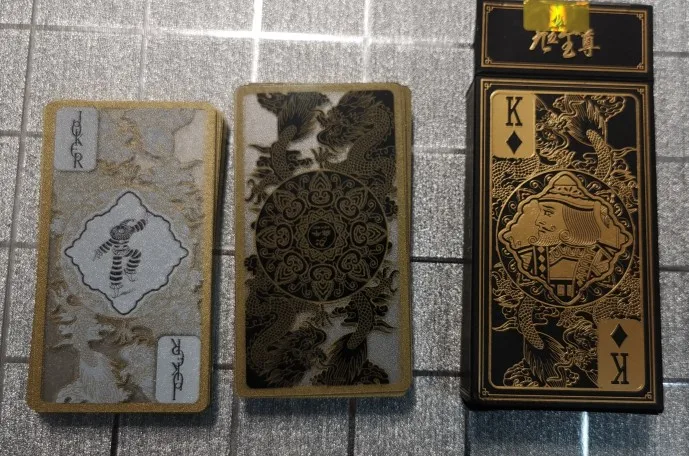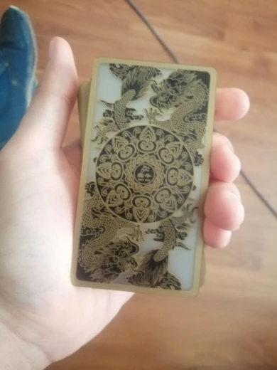 Игра заказана 14 октября и прибыла домой 24 октября в течение 10 дней. Полностью соответствует описанию, толстые пластиковые карты, прозрачные, легко моются с красивыми золотыми ломтиками. Я себе представлял, что они немного больше, но размер довольно похож на стандартную карточную игру.