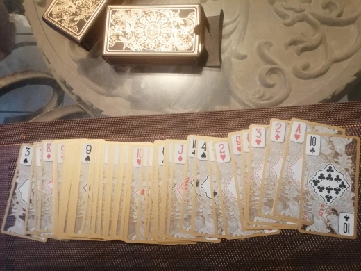 Карты с лицевой стороны имеют матовое шершавое покрытие. Не всем понравится. Еще при лёгком сгибе остаются вмятины. В остальном карты симпатичные. Но качество на мой взгляд не дотягивает до цены.