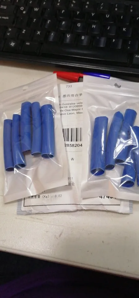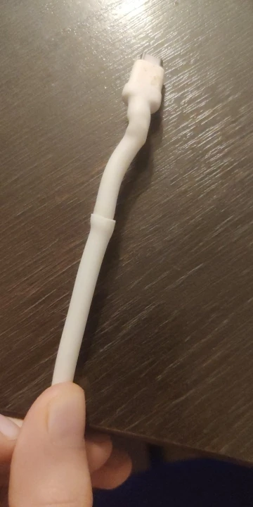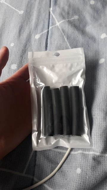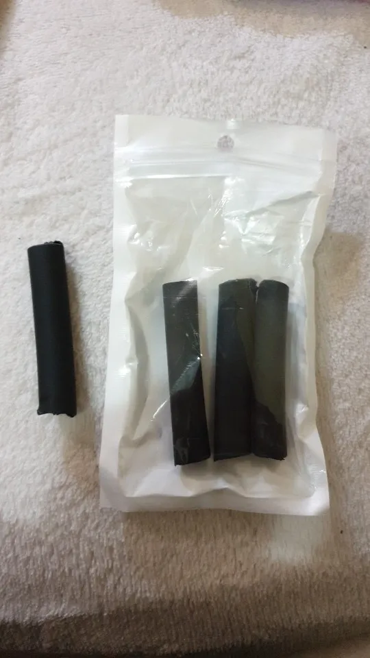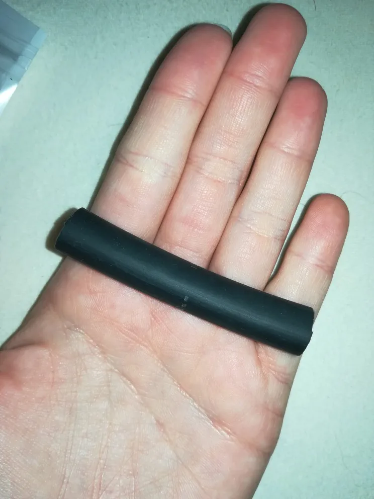 Доставка за 14 дней. Сжалось воздухом из фена температурой 400 градусов Цельсия до диаметра 3.5 мм и приклеилось. Результат немного жёстче, чем ожидалось.