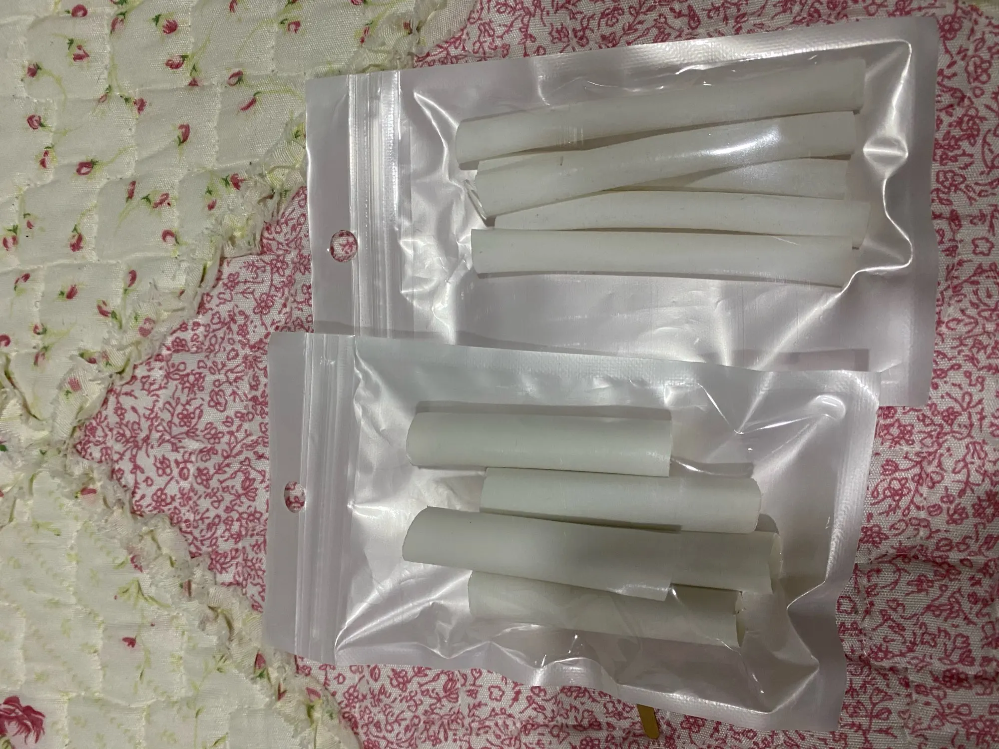 Получила. Заказала один комплект, пять штук около 6 см белого цвета. Ещё не применила. Диаметр достаточный, не маленькие.