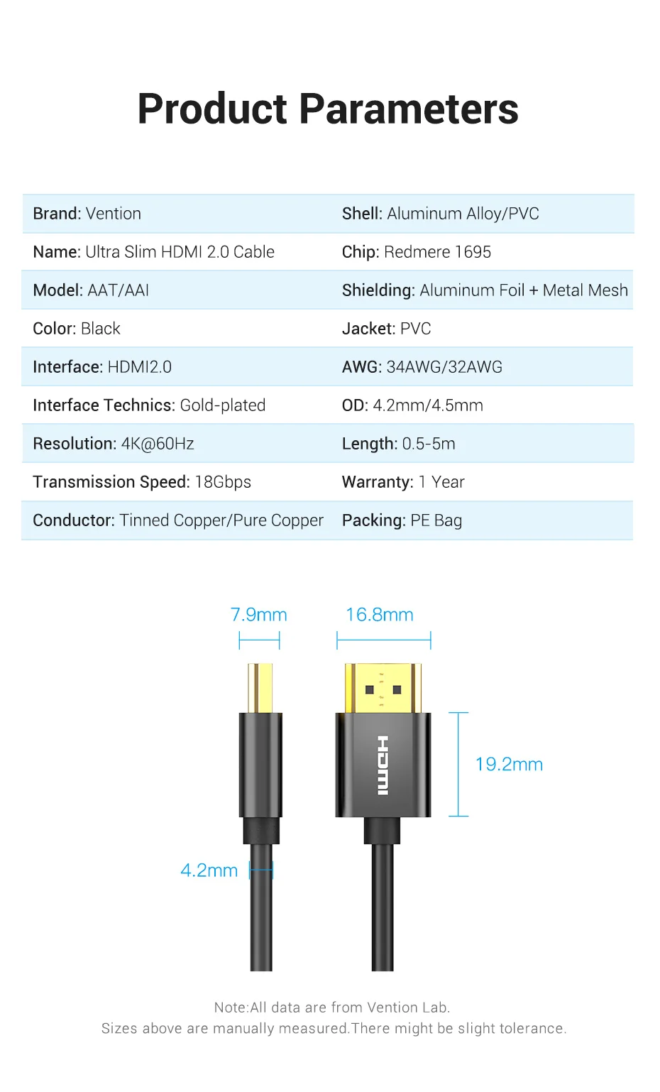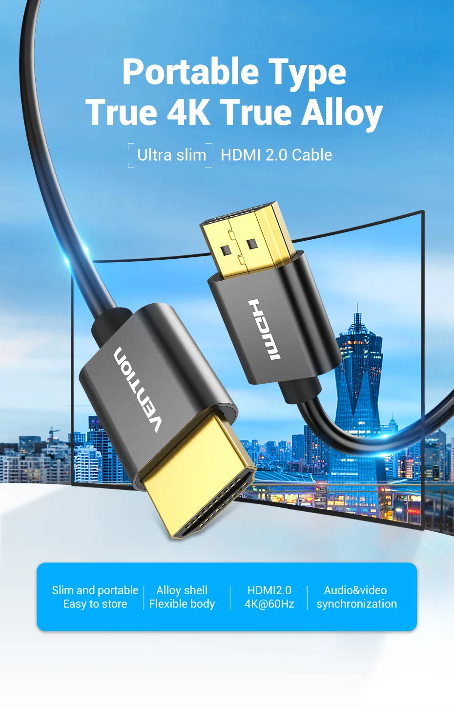 HDMI-кабель Vention Slim, 4K 3D Ultra HD HDMI 2,0 для Xbox PS34 шт., монитора, Nintendo Switch, проектора, HDTV, HDMI-кабель тонкий 4K60 Гц