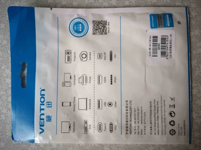 Заказ доставлен довольно быстро, за три недели в Московскую область. Упакован в фирменный пакет (пупырка), повреждений не было. Качество кабеля довольно хорошее, фиксация чёткая. Длина кабеля соответствует. Бренд "VENTION" как всегда на высоте!!!!!! Товар и продавца однозначно рекомендую.