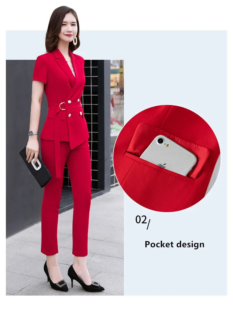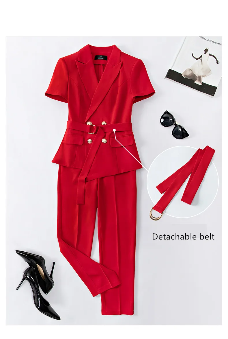 Женский брючный костюм с ремнем, деловая одежда для работы и офиса, лето 2019