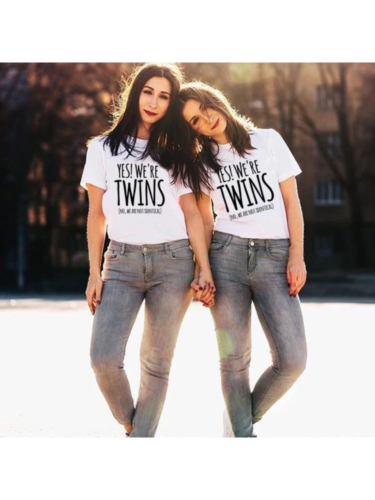 1 шт., женская футболка для близнецов, футболка с надписью Best Friend Sister Tumblr, топы Yes We're Twins No We не идентичные модные футболки для девочек