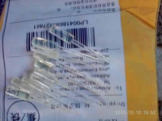 пришло в срок,за 10 дней. упаковка была пропитана этой жидкостью. одна эта штучка была открыта и из неё всё вылилось. вскрыл другую и сразу использовал по назначению, всё получилось. фото до не делал,поэтому и после смысла нет фоткать. но всё получилось. спасибо.