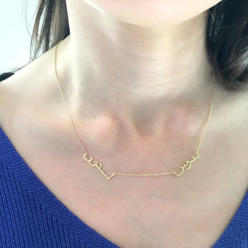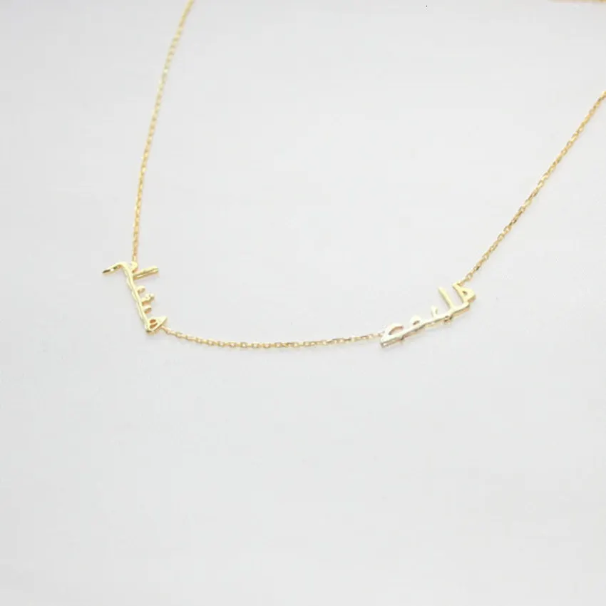 На заказ двойное арабское имя кулон ожерелья исламские ювелирные изделия персонализированные серебряное золото роза Ketting колье ожерелье для женщин Collier