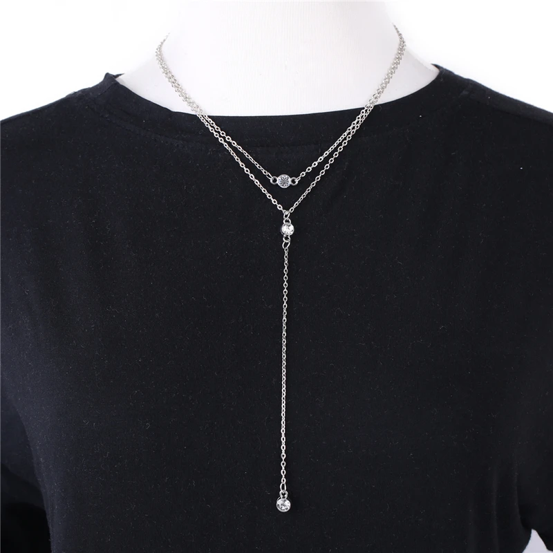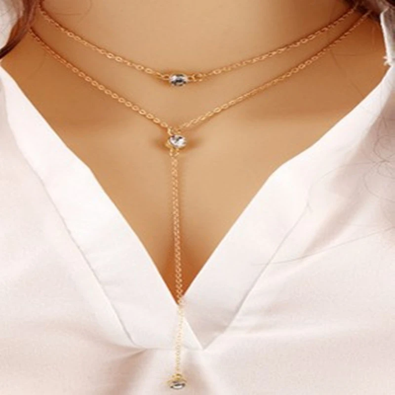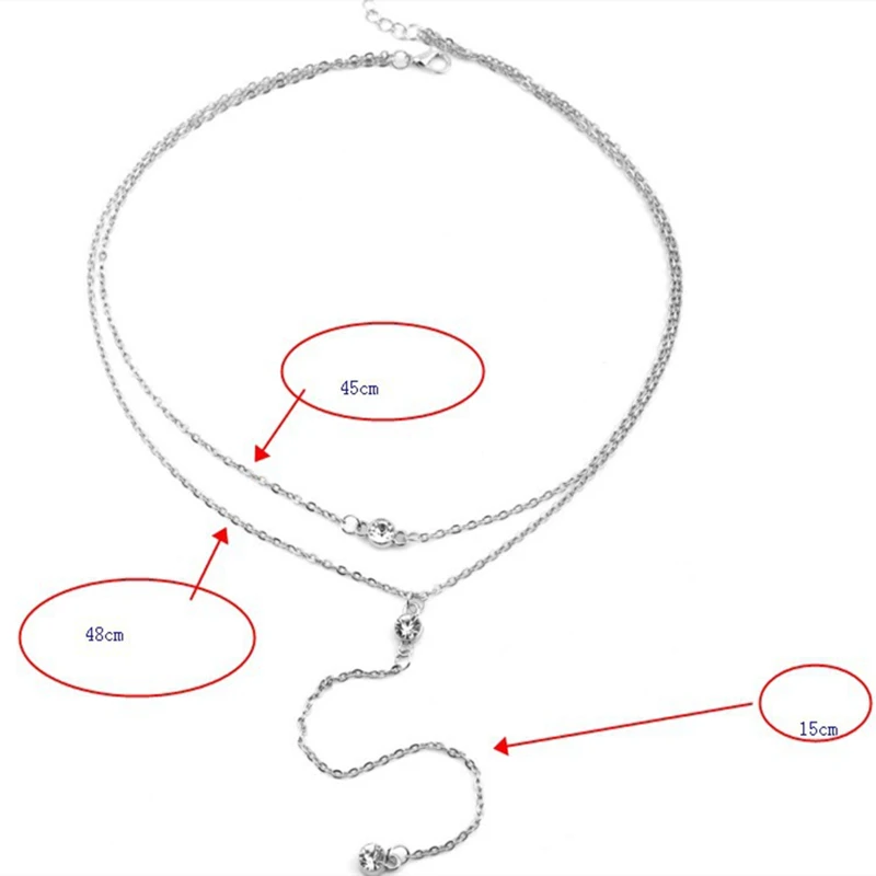 Название: ожерелье с двойной цепочкой; Стразы; Многослойное колье из сплава ed; Многослойное винтажное ожерелье с подвеской для женщин