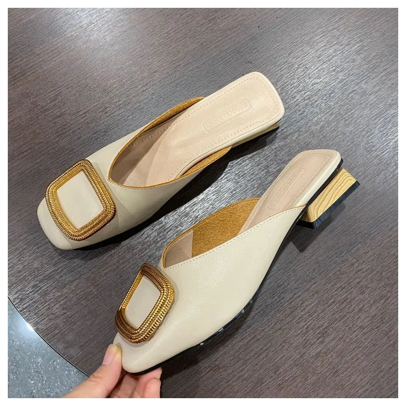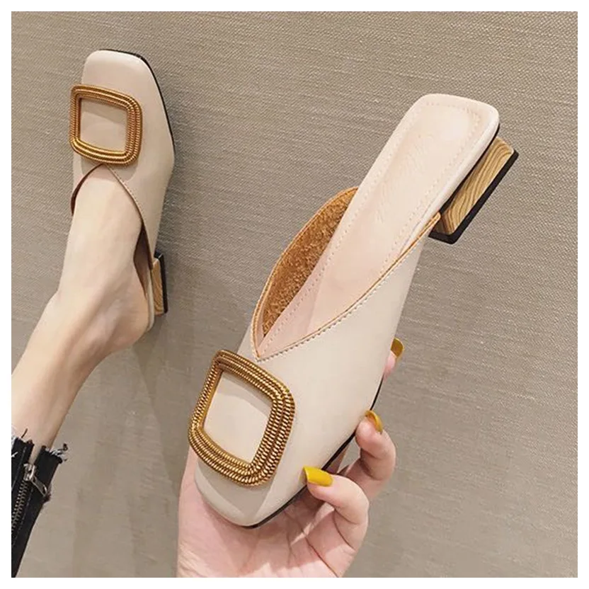 Шлепанцы женские, на плоской подошве, с деревянным блочным каблуком, 2021