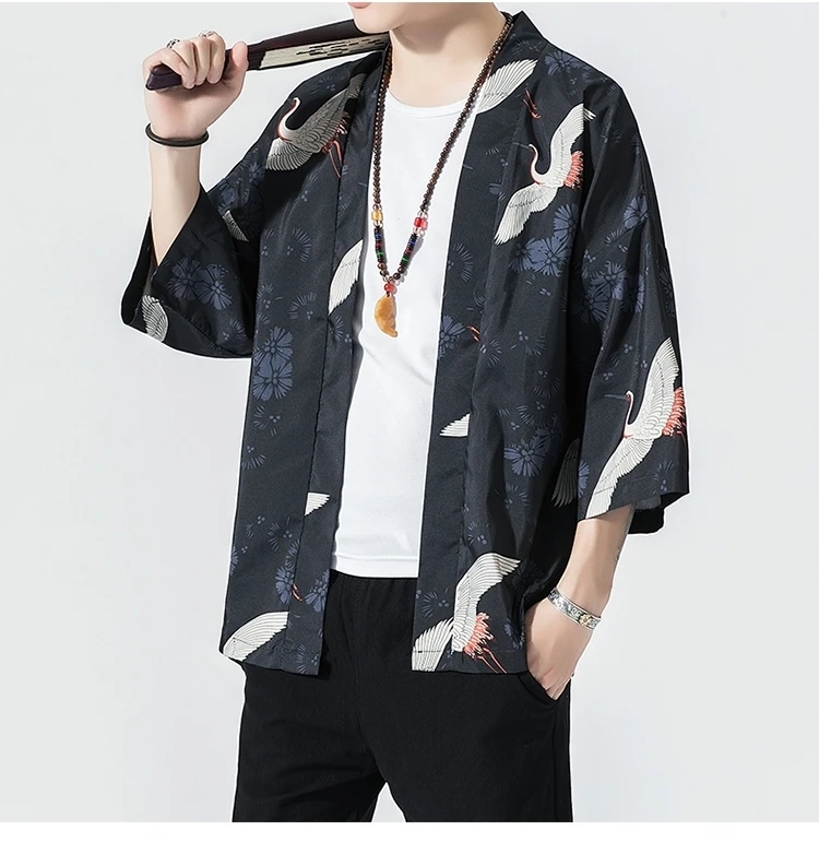 Мужской кардиган-кимоно, в японском стиле, Повседневный, свободный,...