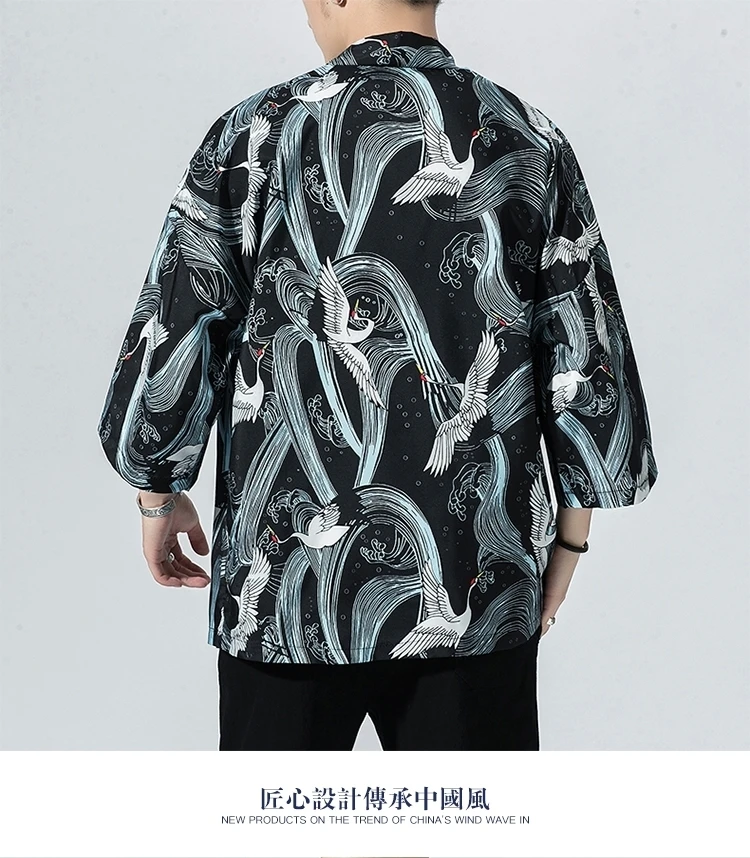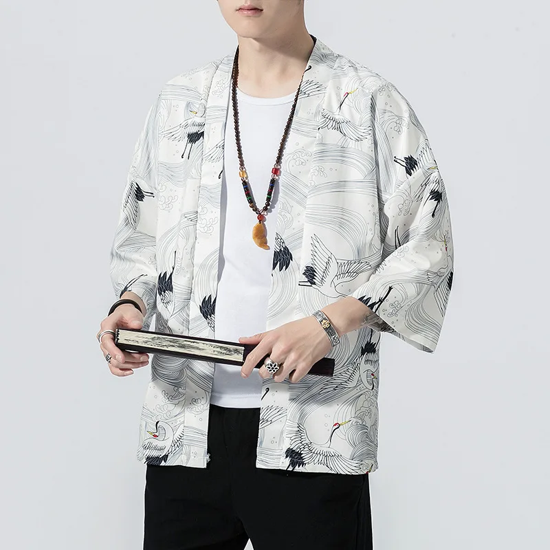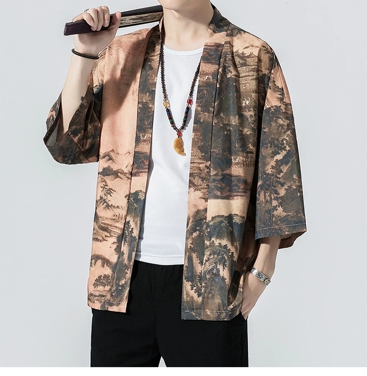 Кимоно мужское в японском стиле, юката, свободный солнцезащитный ка...