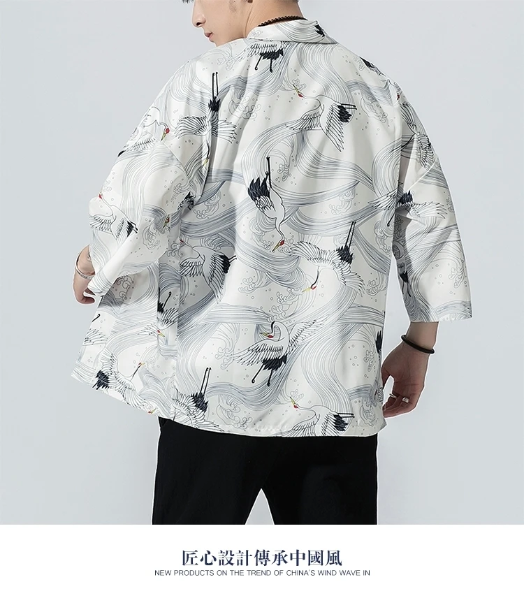 #5004 мужские кимоно рубашка в китайском стиле Стиль с принтом в винтажном стиле кардиган свободного покроя черный, белый цвет Мужские рубашки в стиле ретро размера плюс 5XL летние 2020