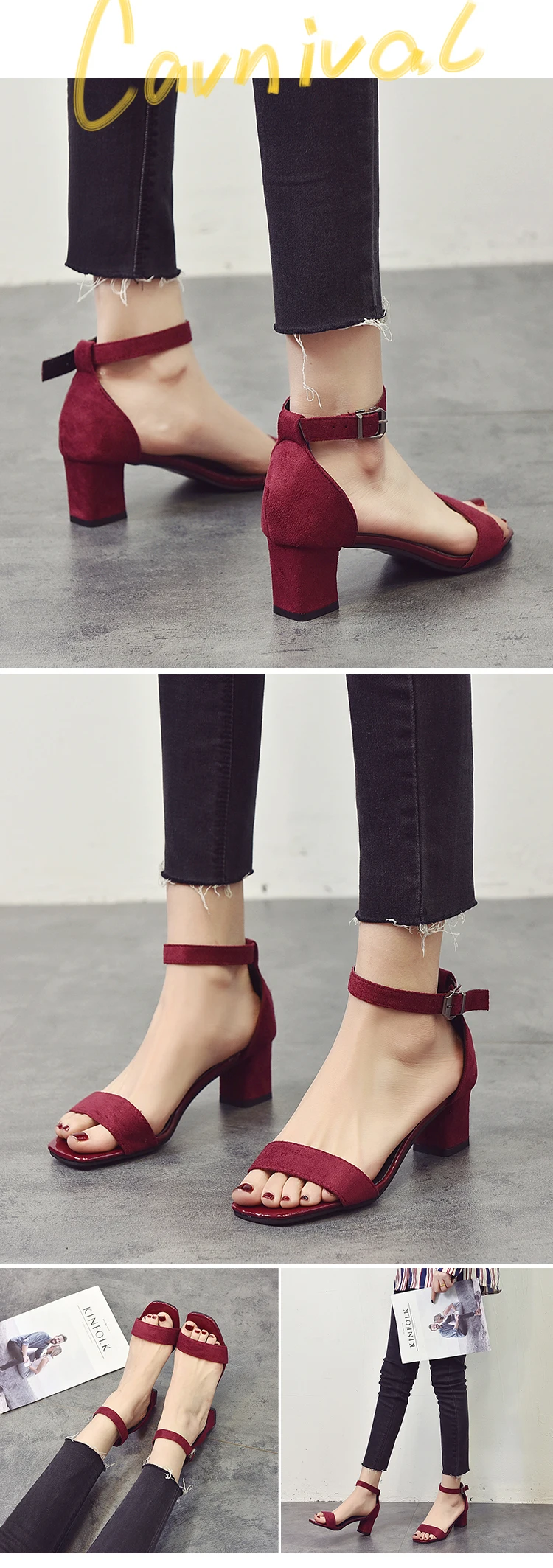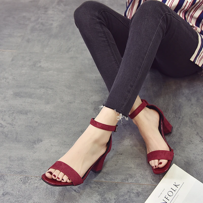Сандалии женские на толстом каблуке, замшевые босоножки на среднем ...