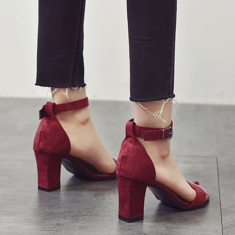 Замшевые босоножки на высоком каблуке для женщин 2019 Летняя обувь ...