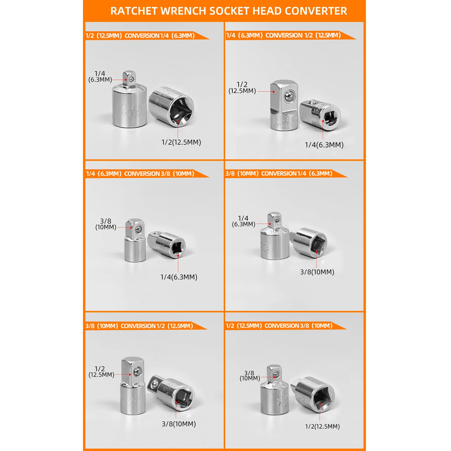 Храповый гаечный ключ с головным преобразователем 12 "38" 14 "адаптер для ремонта автомобиля ручной инструмент розетка электроинструменты