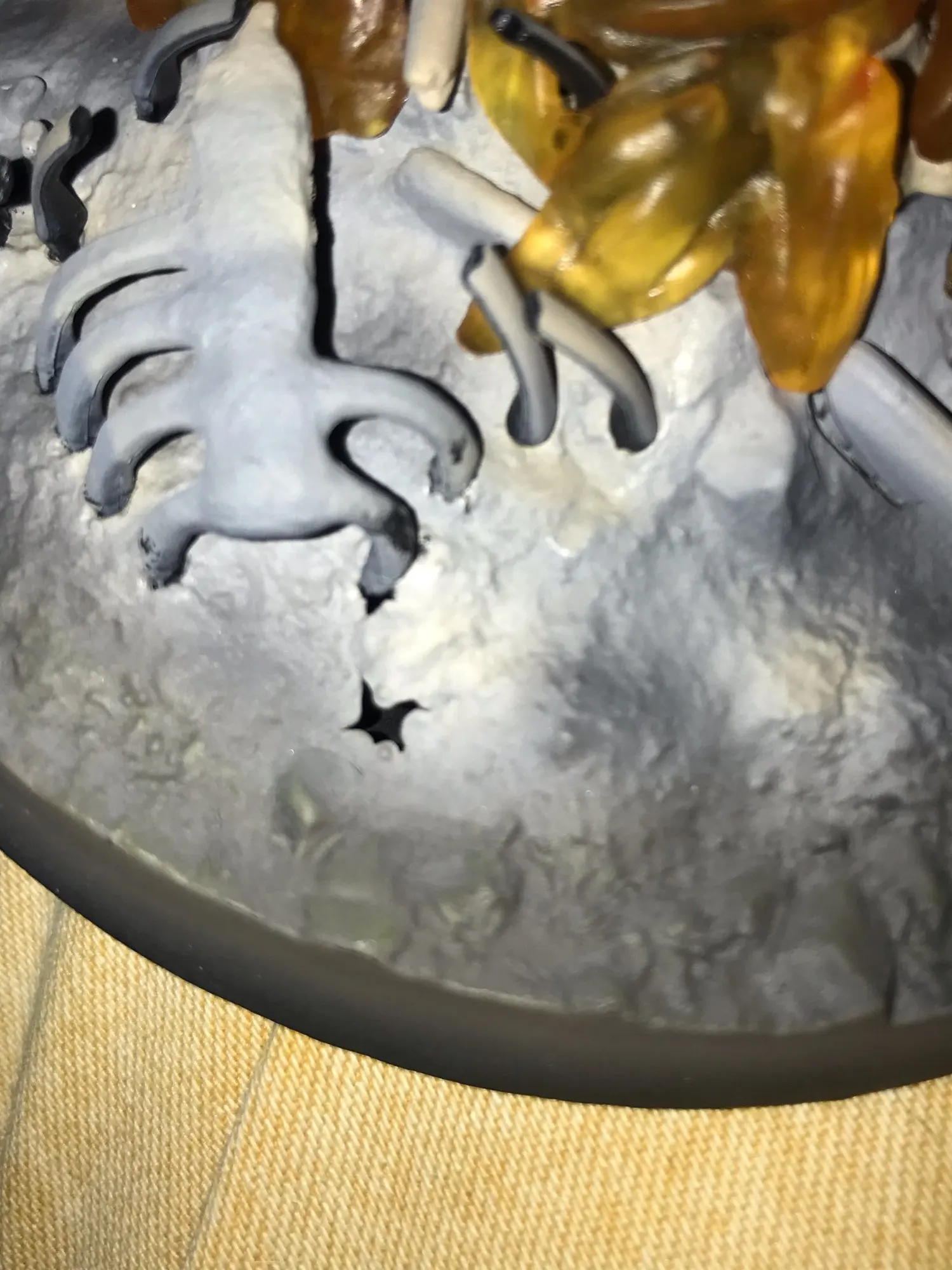 Он пришел очень хорошо запечатанным, с пузырчатой пленкой и некоторыми пробками вокруг меча. Что мне не понравилось, так это отверстие, которое вы видите на фотографиях, которое не имеет большого смысла в том, что есть и некоторые заусенцы в окружности платформы процесса производства. Справедливое качество краски, хорошее освещение, пульт и фигура включали в себя батареи, И, наконец, прозрачная окружность, где находится батарея, очень плохого качества, и Пластиковая Палочка сломалась, когда ее разбили 1 раз. Я рекомендую продукт, если он опускает цену, на мой вкус дорогое качество цены.