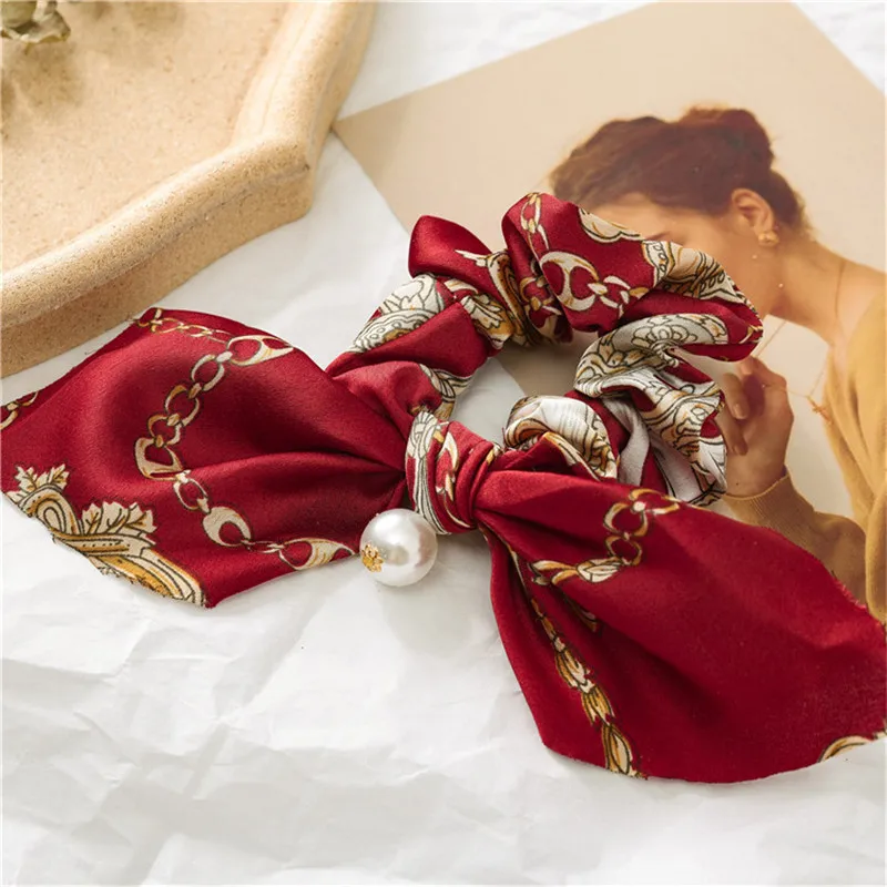 Ruoshui прекрасный кролик Scrunchies женщина печатных волосы с цветами Галстуки Девушки эластичные резинки для волос аксессуары для волос хвост держатель