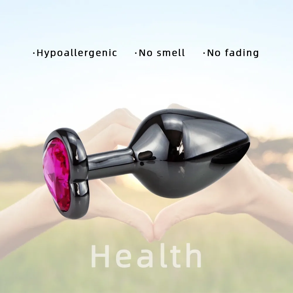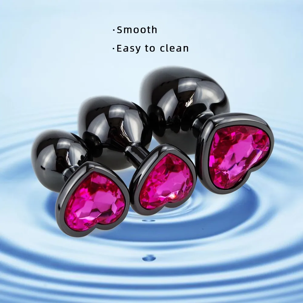 Черная металлическая Анальная пробка с розовым красным сердечком, кристально гладкая Анальная пробка, расширитель для пар, товары для взрослых