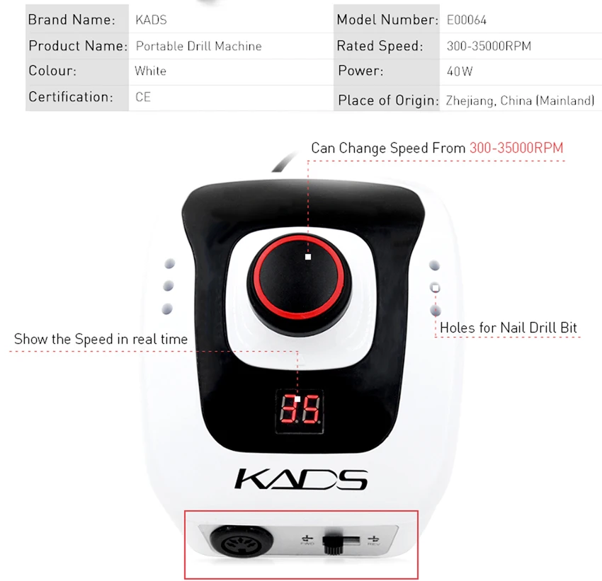 Kads Новое поступление 300-35000 об.мин. Белый Nail оборудования Ма...