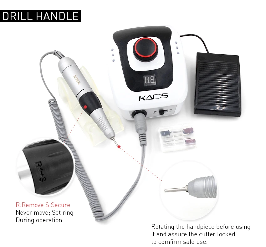 Аппарат для маникюра и педикюра KADS, 35000 об.мин., с набором фрез