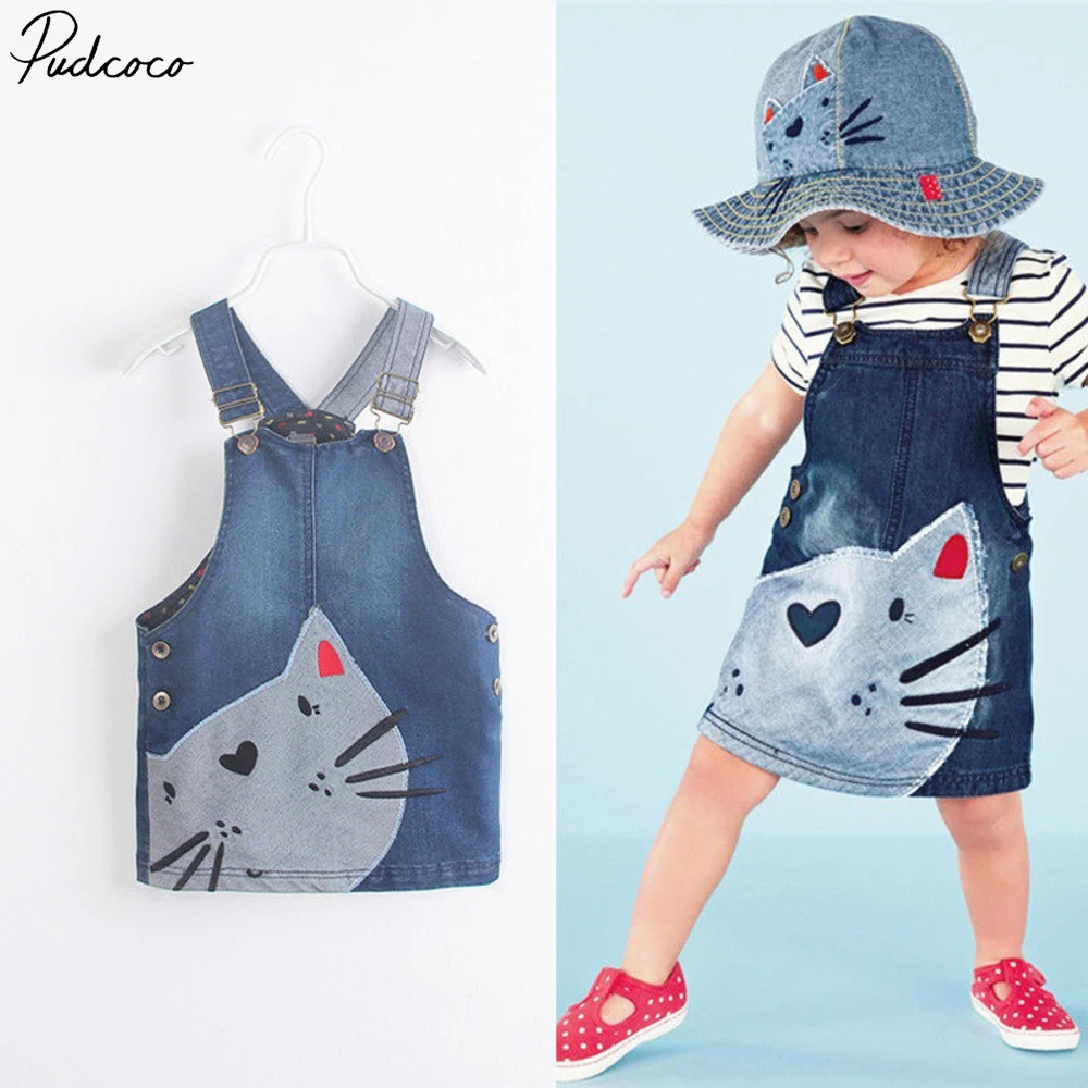 Платье детское, на новый год, 1 шт., джинсовый комбинезон с изображением кошки, на бретелях, 2018 лет, От 2 до 6 лет