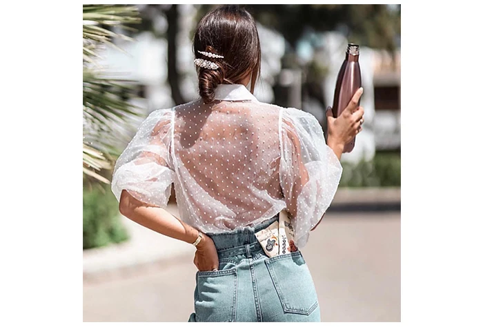 Женская прозрачная блузка в горошек, летняя прозрачная блузка с пыш...