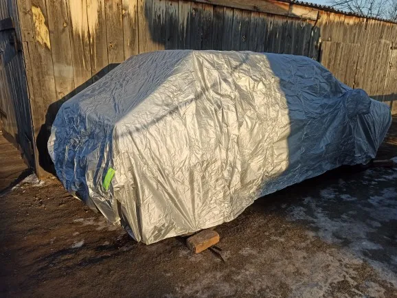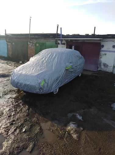 пришло за 9 дней до Кемеровской области. брал прикрывать вторую машину от наледи зимой и снега. летом смысла сильно не вижу, разве что от жары и пыли, хотя только от жары, т.к мою пару раз в неделю. автомобиль ваз 21093, в данный момент, но брал с небольшим запасом т.к планируется смена машины, либо приора седан, либо калина универсал, что на то, что на то сядет точно идеально, да и девятка вполне себе прикрыта, только вот за колеса не обвязать, но это не смертельно, за эти деньги я доволен покупкой. около левого кармана под зеркало, небольшой след крови, видимо китаец поранился))) ну да ладно, покупку это никак не омрачает. фото прилагаю: