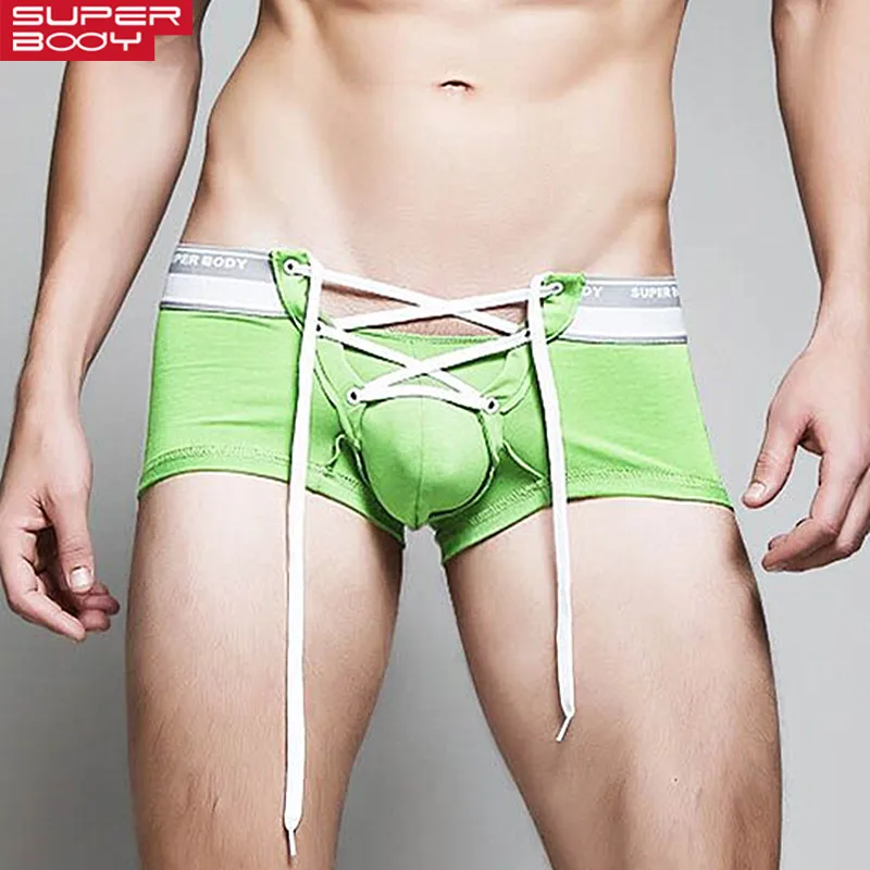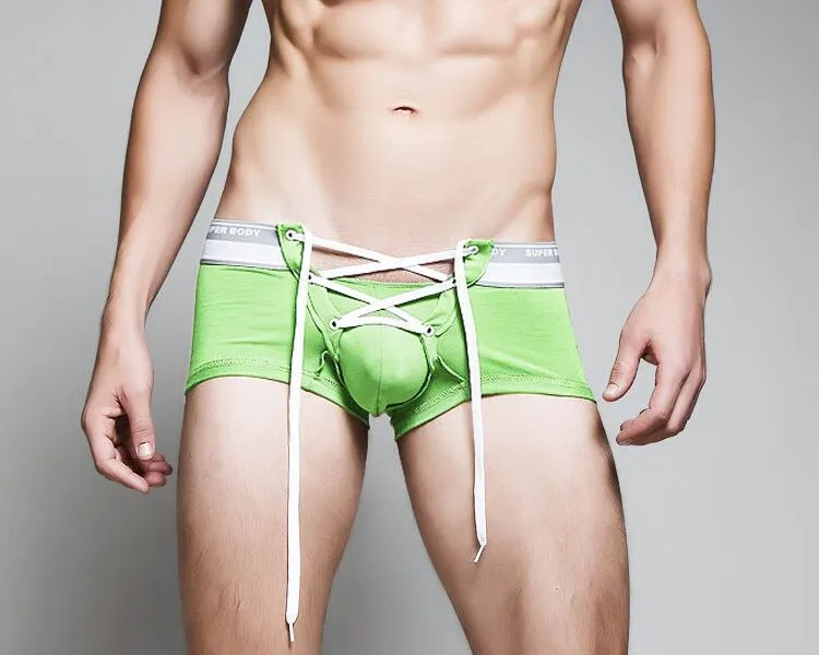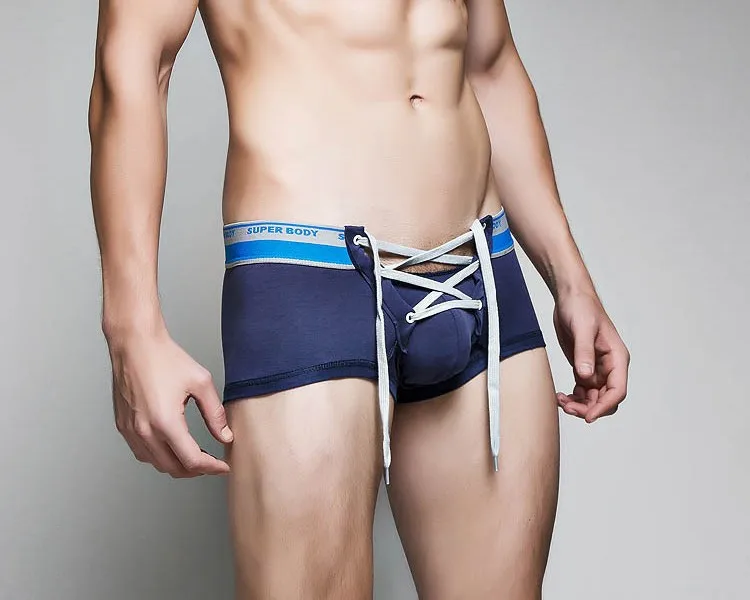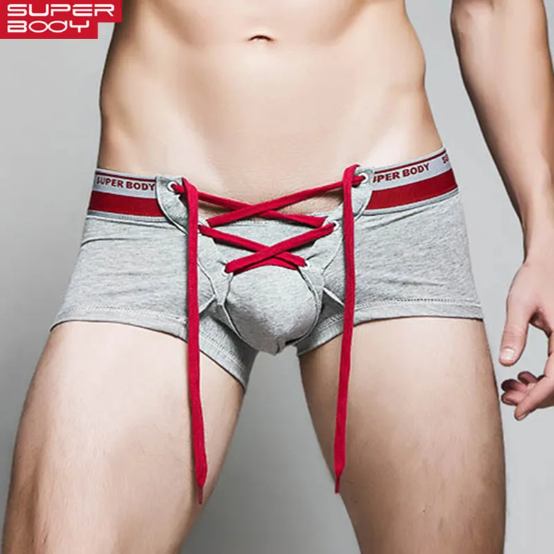 Трусы-боксеры мужские, с заниженной талией, с мешочком для пениса, сексуальное нижнее белье на завязках, мужской галстук