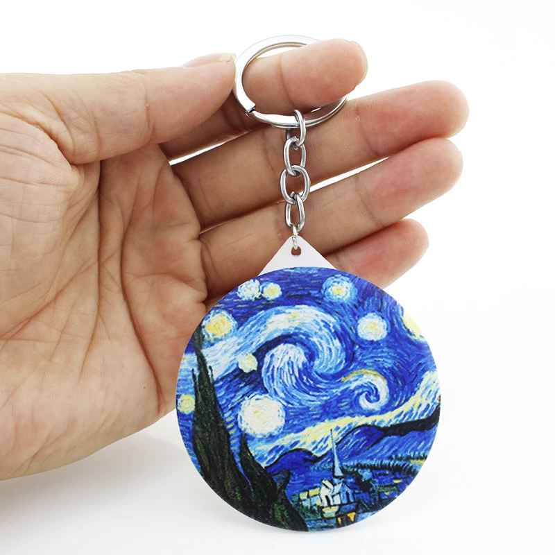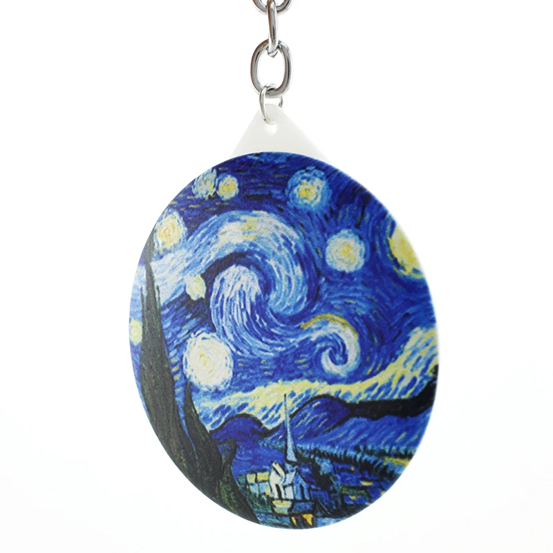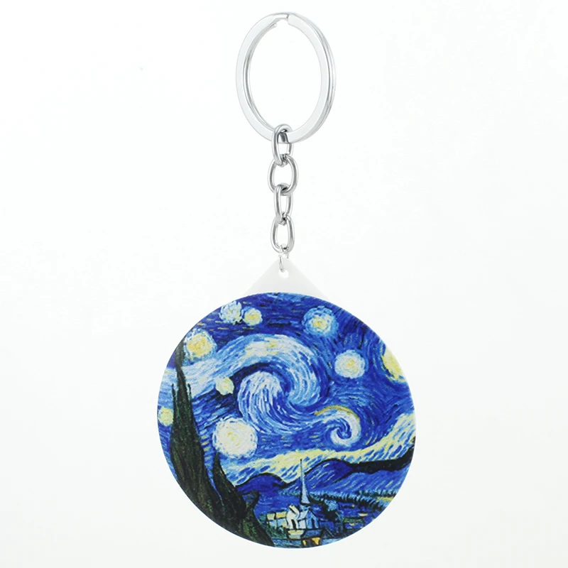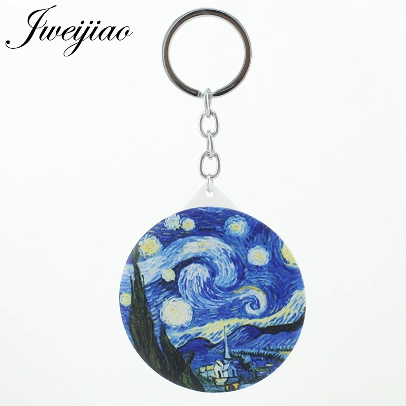 Брелки для ключей JWEIJIAO с рисунком Ван Гога, с рисунком звездной ночи, фото, зеркала для макияжа, подарки