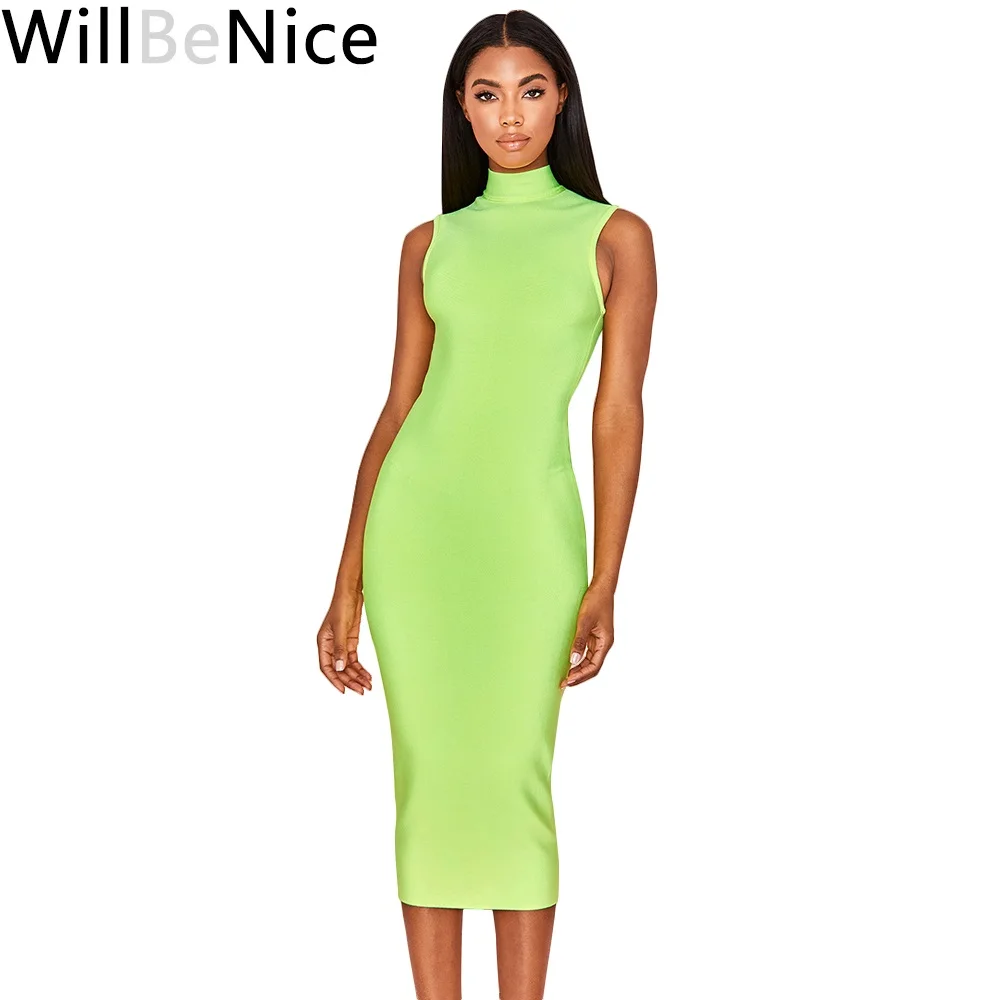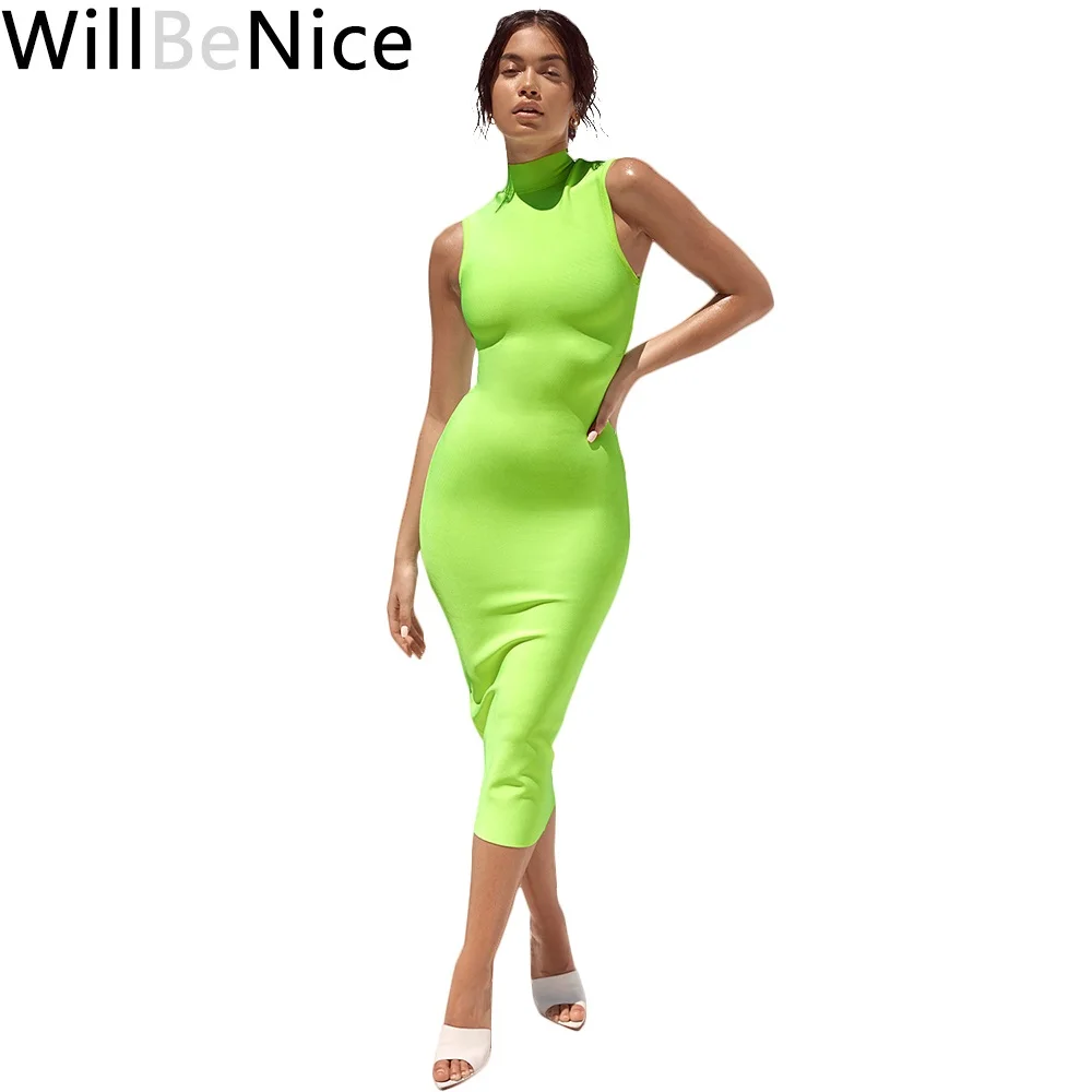 Платье WillBeNice женское, Бандажное, без рукавов, с высоким воротом, для вечеринок
