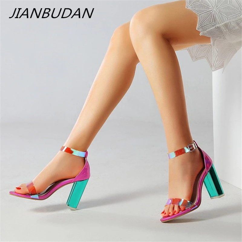 Женские босоножки JIANBUDAN, на высоком каблуке, с пряжкой на щиколотке, прозрачные, летние