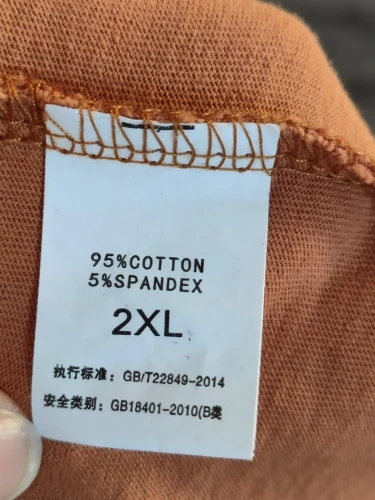 Всё точно как на фото продавца. Хлопок. XXL отлично сел на ОГ 96 см. В меру свободно, не висит и не в облипку. Так ,как на модели. Качество пошива отличное. Бирки есть.Рекомендую.