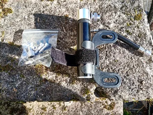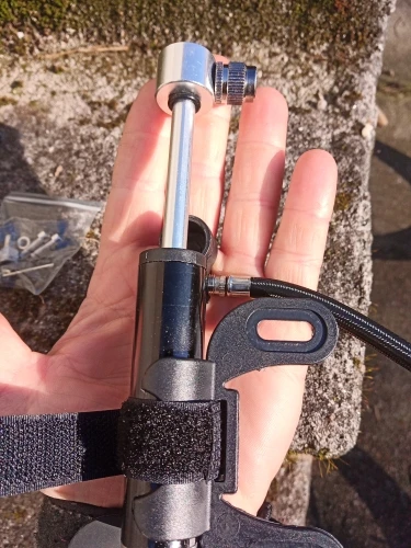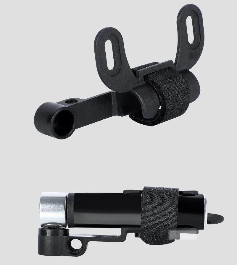 Насос миниатюрный. думаю придется им долго работать, чтобы накачать полностью спустиввшую камеру, после ремонта прокола. Но чтобы возить с собой, наверное это нормально. Крепление для насоса, выглядит надёжным, но место для шланга, не предусмотрено, придется ложить отдельно. Для меня это не критично, и.к. я и сам насос к раме крепить не собираюсь - свой первый насос я потерял, даже, с казалось бы надёжным креплением- с тех пор вожу насос в подрамной сумке