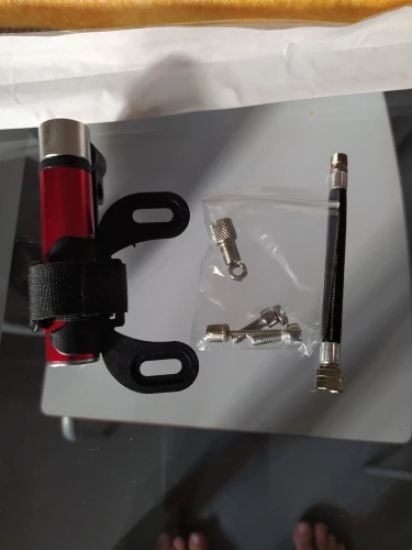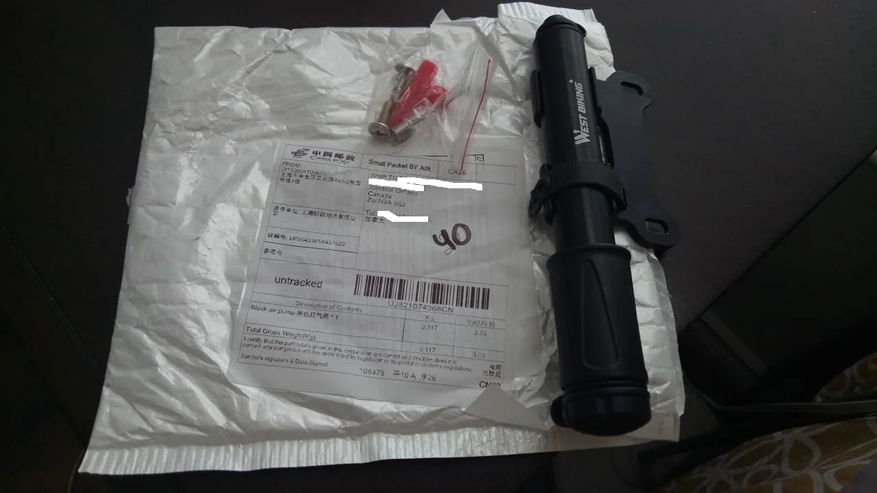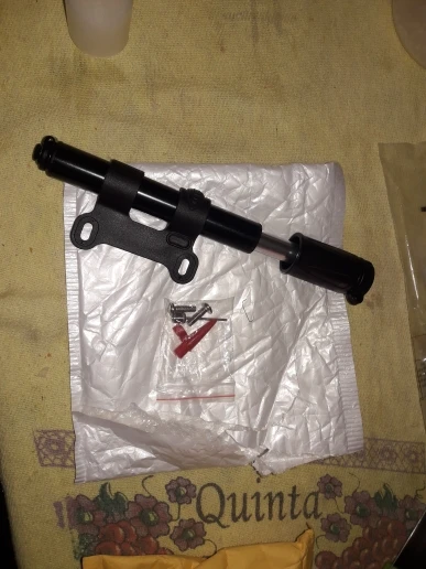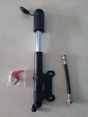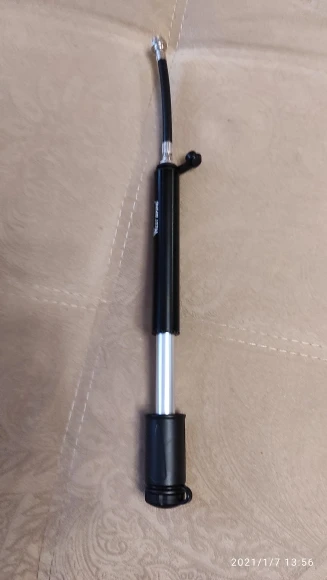Доставка быстрая, примерно две недели до МСК. Насос классный, из металла. Компактный. В комплекте шланг, который прячется в ручку насоса и две насадки для накачивания мячей. Крепёжные винты для установки держателя насоса на раму велосипеда и сам держатель. Особо хочу отметить, что на держателе есть резиновый фиксатор(ремешок) который надёжно зафиксирует насос и не даст ему потеряться при активной езде. Я кстати, так потерял ранее один свой хороший насос. Качает насос хорошо. Можно смело рекомендовать насос к приобретению.