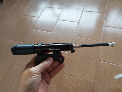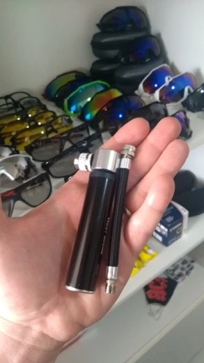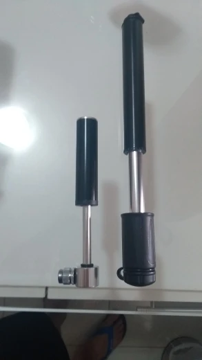 Меньше чем казалось, не телескопический, на одну ступень, шланг пляченся внутрь. Подкачать в дороге пойдет. Очень легкий и маленький, думаю на раму крепить не буду.