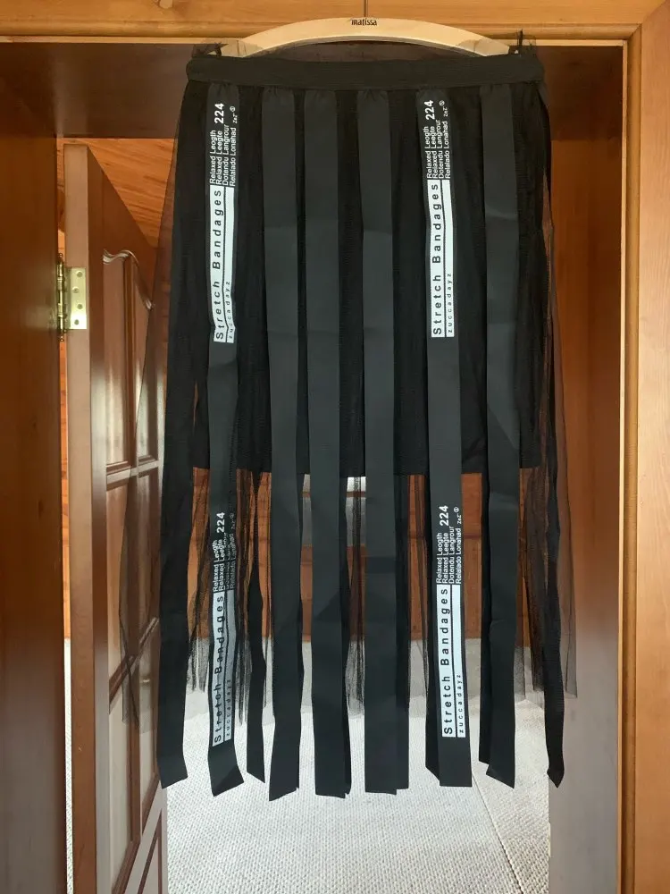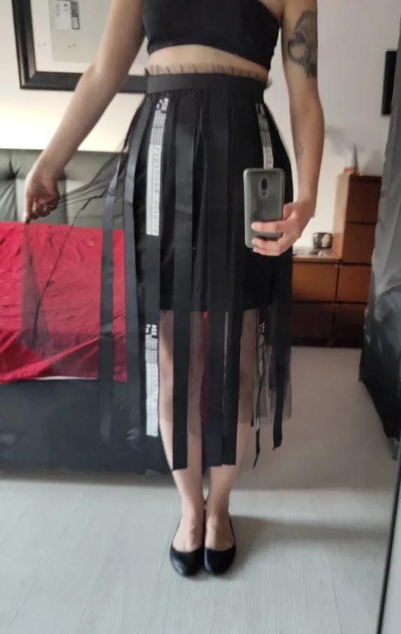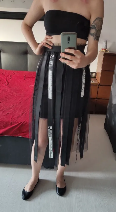 доставка быстрая,юбка отличная!!!из минусов -не обработаны края лент,сыпятся. мой рост 165 см, от 76,об 95.село идеально)) подьюбник до колен,швы ровные, ленты пришиты только на поясной резинке.белый цвет на лентах только спереди,сзади все чёрное.очень стильная юбка!прям люблю))) спасибо!!